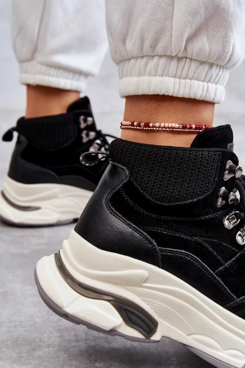 Obuwie sportowe firmy GOE zapewni Ci wygodę i komfort podczas użytkowania. Wykonane z połączenia naturalnego zamszu i naturalnej skóry, a wkładka ze skóry ekologicznej. Model klasycznie sznurowany. Buty te zostały osadzone na masywnej platformie. Wysoka cholewka zapewni stabilizację nogi podczas spacerów czy wycieczek. Ten model powinien znaleźć się właśnie w Twojej szafie! Przy wyborze rozmiaru prosimy sugerować się tabelą rozmiarów.