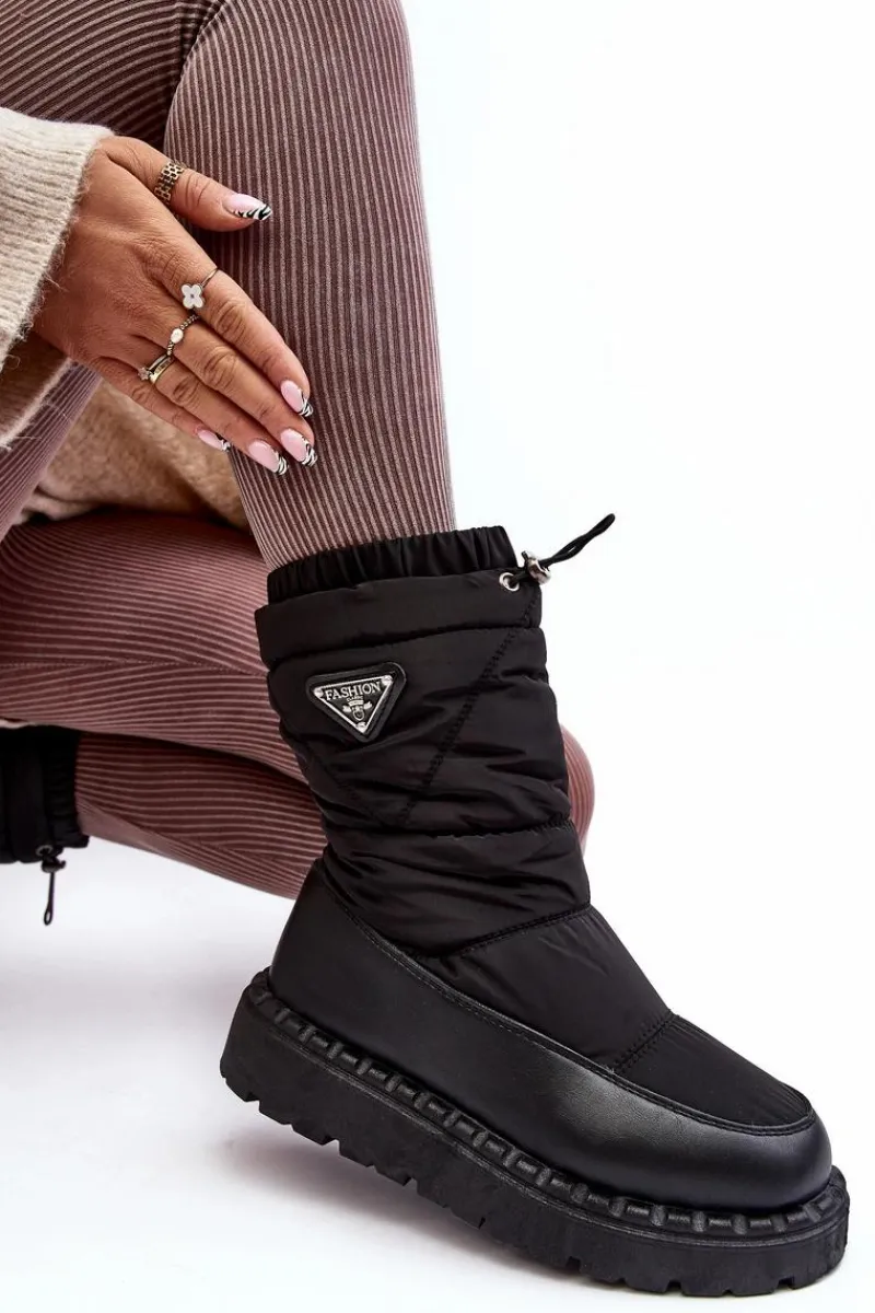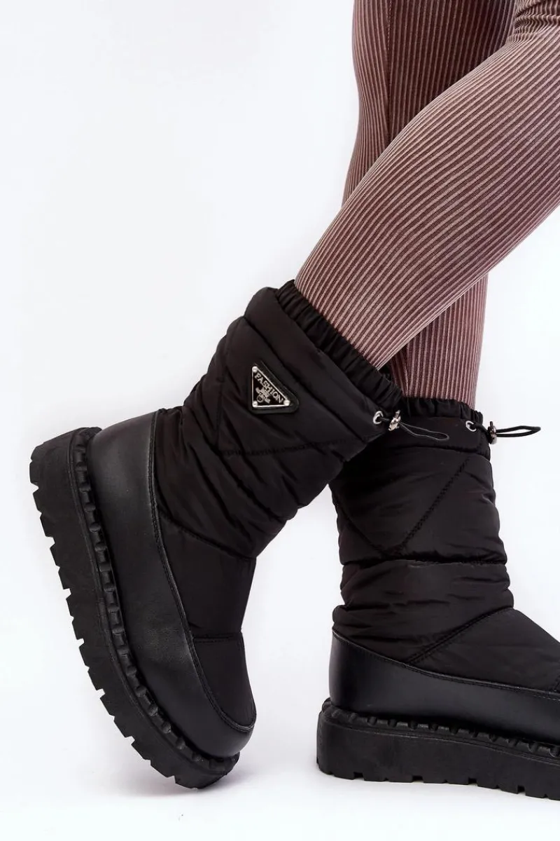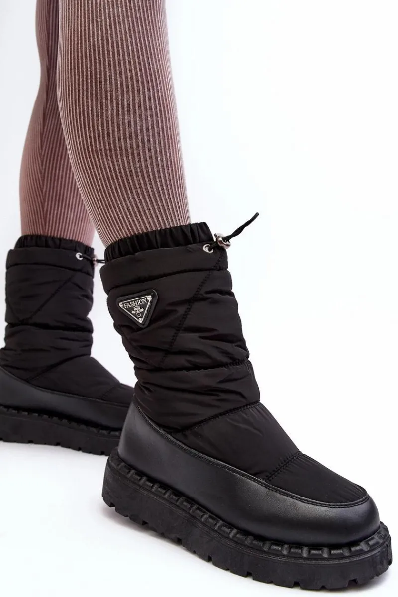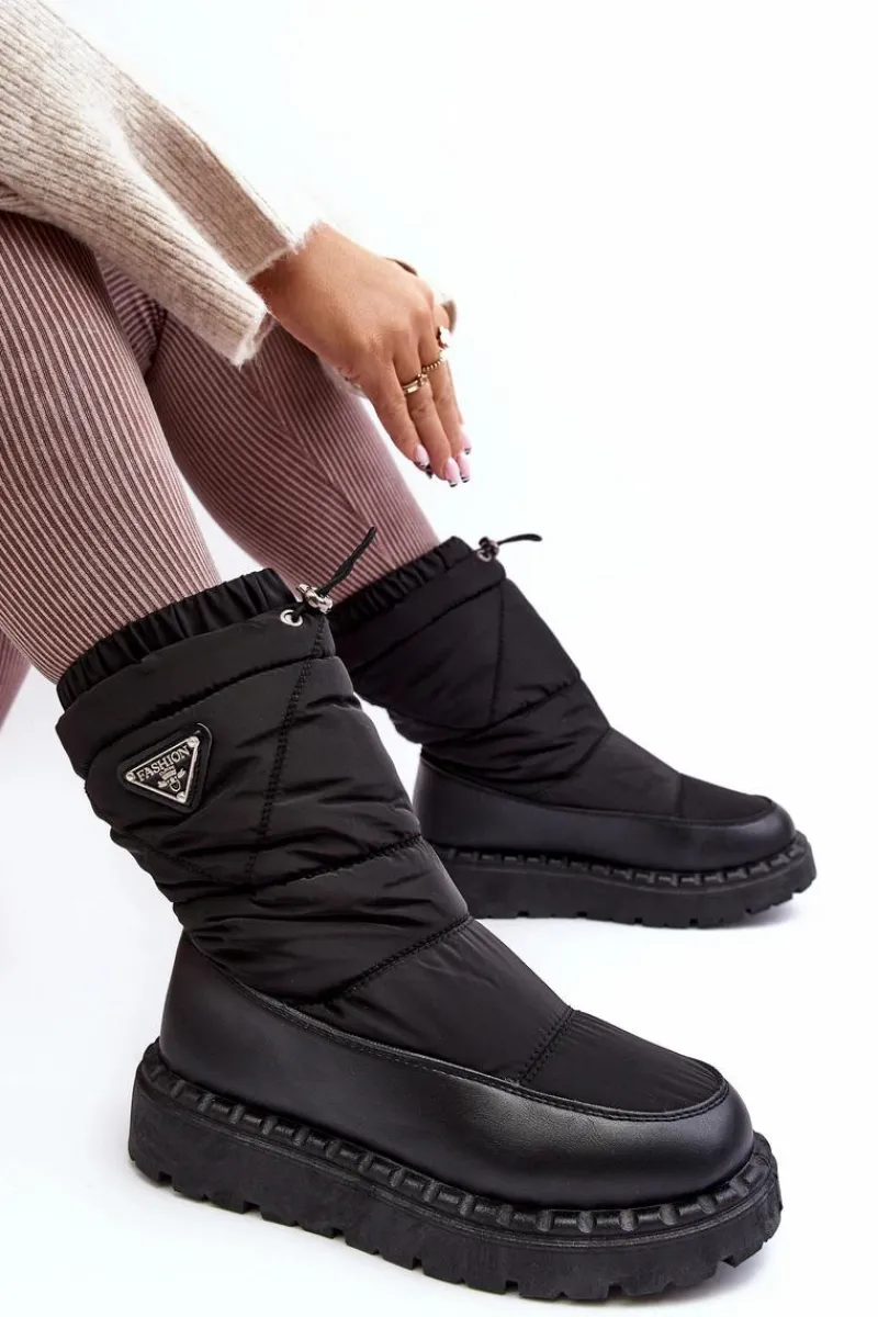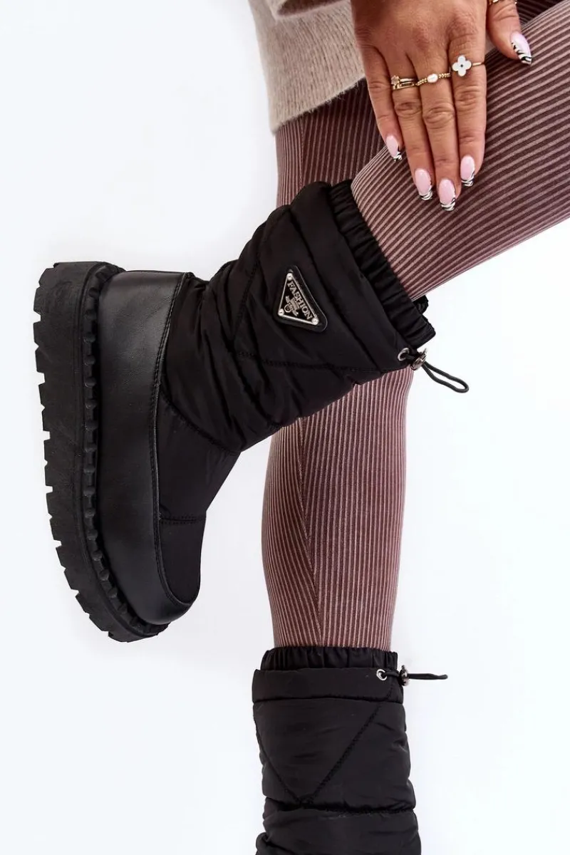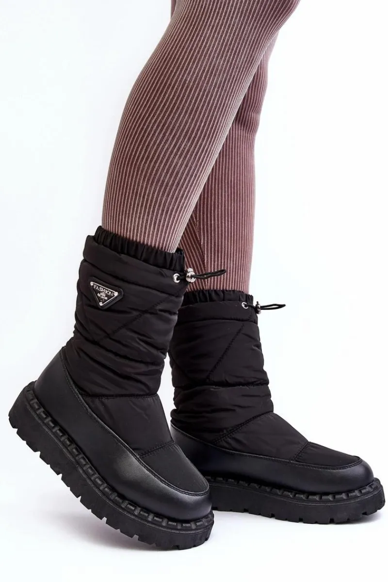 Śniegowce damskie osadzone na grubej podeszwie z gumowego tworzywa. Wykonane z połączenia eko skóry i materiału tekstylnego. Środek ocieplony grubym futerkiem. Na górze cholewki ściągacz. Idealne na mroźne dni! Koniecznie powinnaś je mieć! Przy wyborze rozmiaru prosimy sugerować się tabelą rozmiarów.