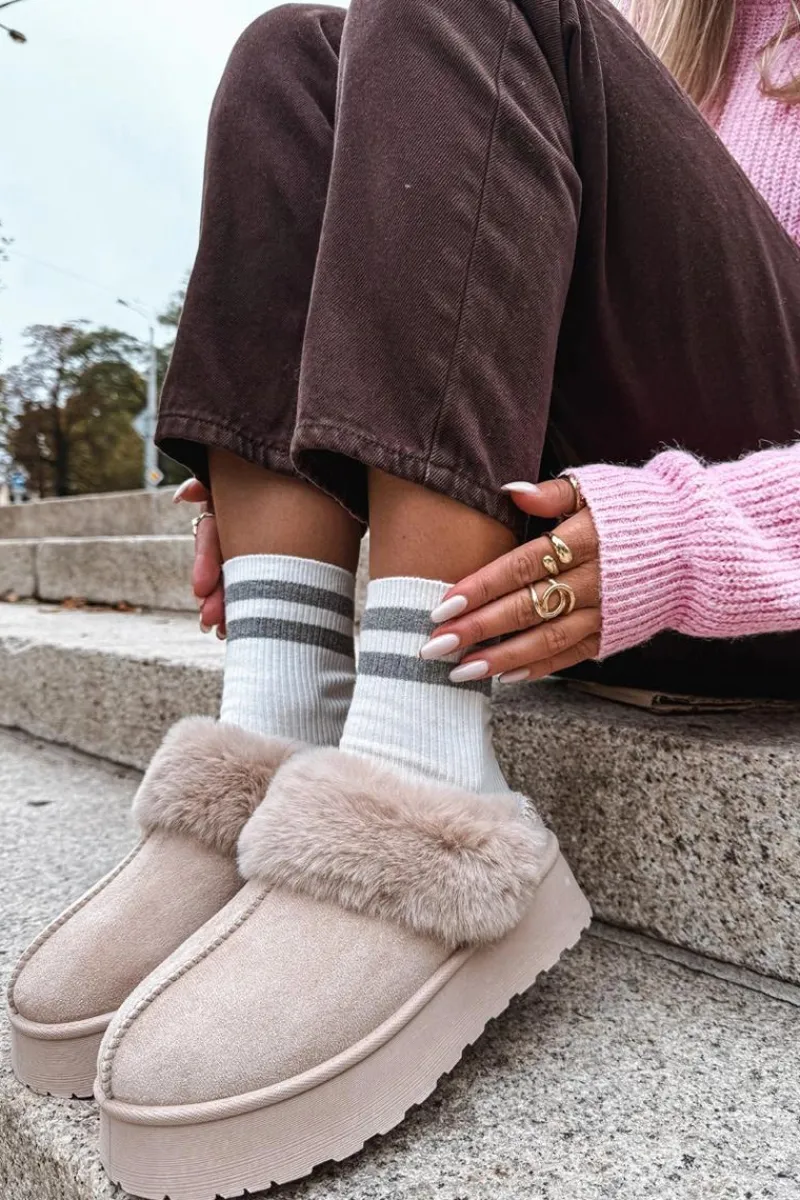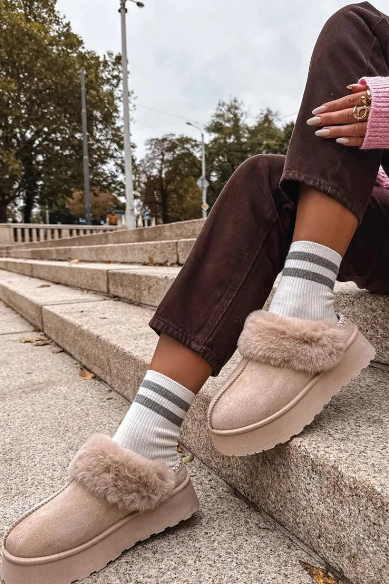 Śniegowce damskie wykonane z eko zamszu to połączenie stylu i funkcjonalności, idealne na chłodniejsze dni. Osadzone na solidnej platformie, zapewniają komfort i stabilność podczas chodzenia. Wnętrze oraz górna część cholewki zostały wykończone miękkim futerkiem, które gwarantuje ciepło i przyjemne otulenie stóp. Dodatkowym atutem jest ozdobny haft, który nadaje wyjątkowego, modnego charakteru. To stylowe śniegowce, które doskonale sprawdzą się na codzienne wyjścia. Przy wyborze rozmiaru prosimy kierować tabelą rozmiarów.