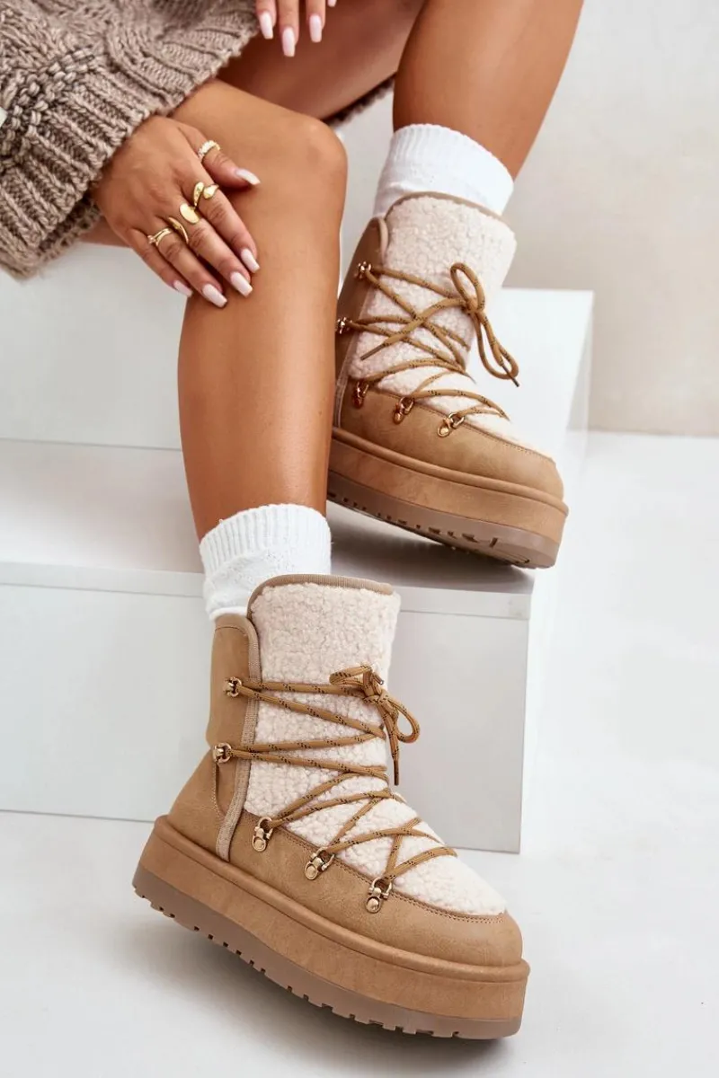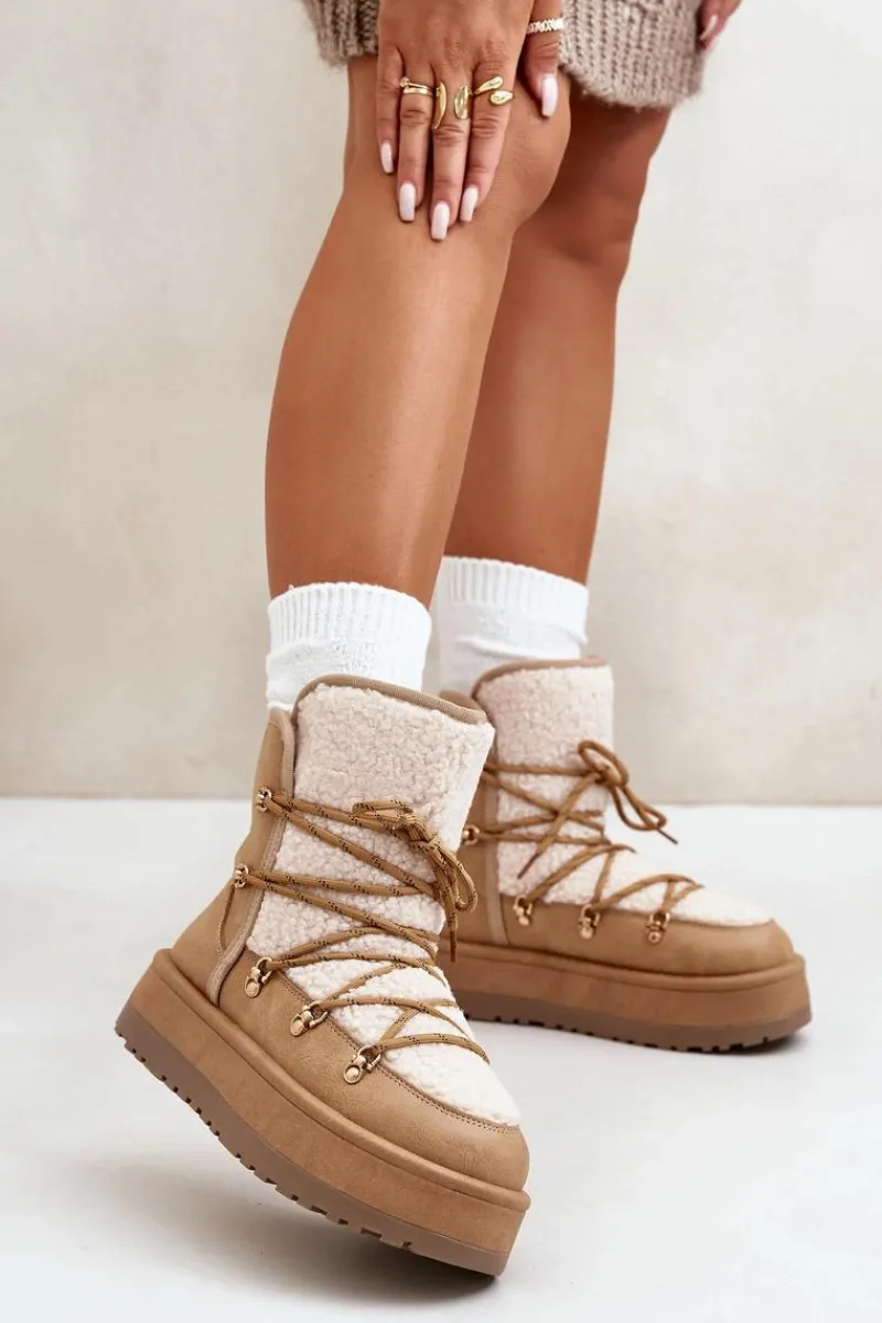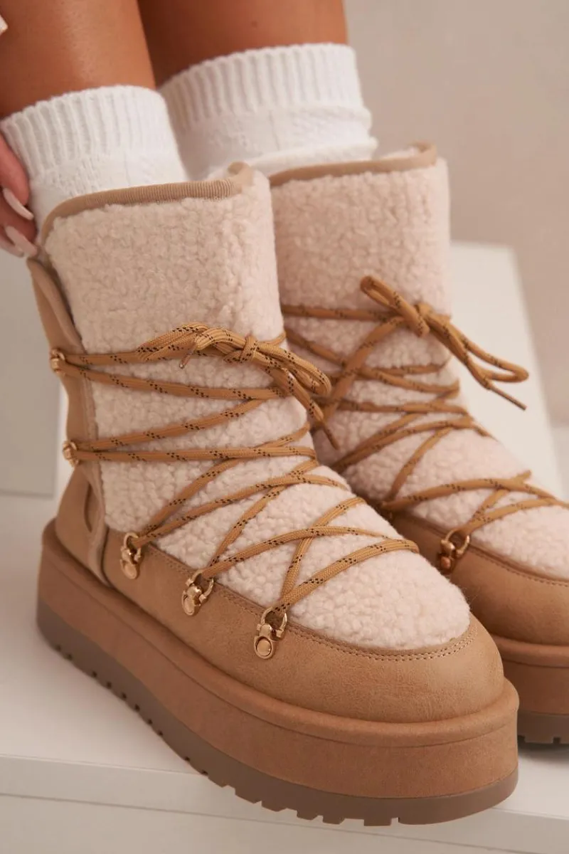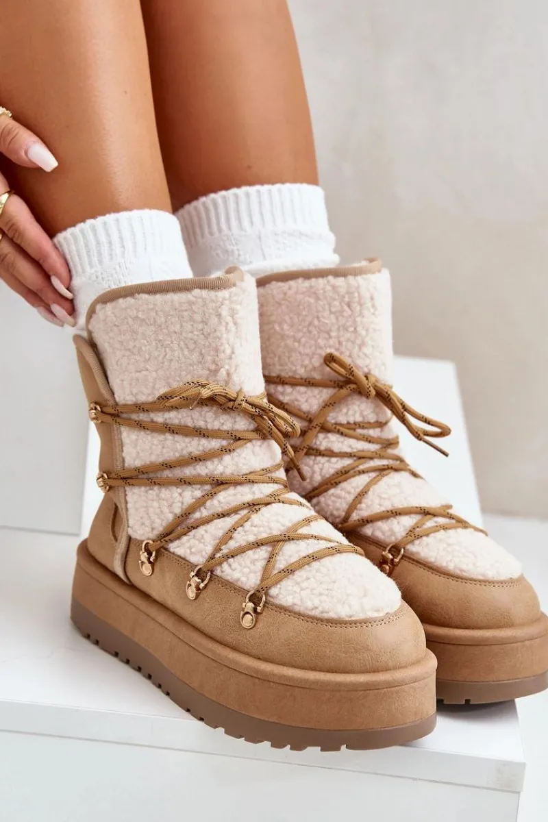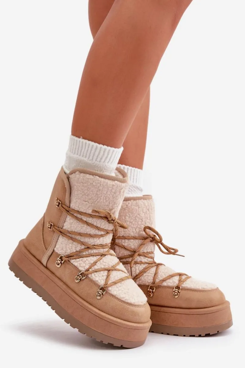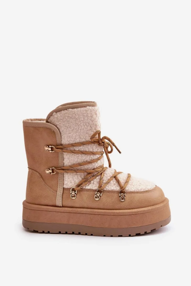 Damskie śniegowce na masywnej platformie, która doskonale odizoluje od zimnego podłoża. Środek ocieplony grubym futerkiem, co zapewni ciepło w mroźne dni. Cholewka z wiązaniem i syntetycznym kożuszkiem. Koniecznie powinnaś je mieć w swojej zimowej garderobie! Przy wyborze rozmiaru prosimy sugerować się tabelą rozmiarów.