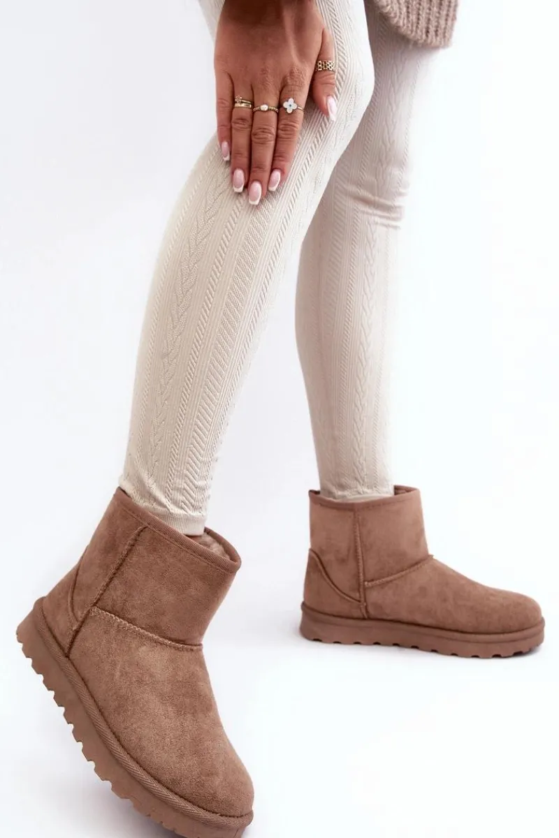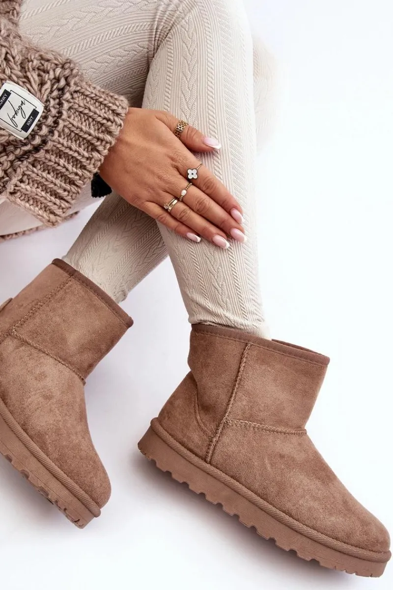 Damskie śniegowce wykonane z eko zamszu. Osadzone na podeszwie z gumowego tworzywa. Cholewka za kostkę. Idealnie sprawdzą się podczas mroźnych dni. Środek ocieplony futerkiem. Ten klasyczny model dopasujesz do wielu stylizacji. Przy wyborze rozmiaru prosimy sugerować się tabelą rozmiarów.