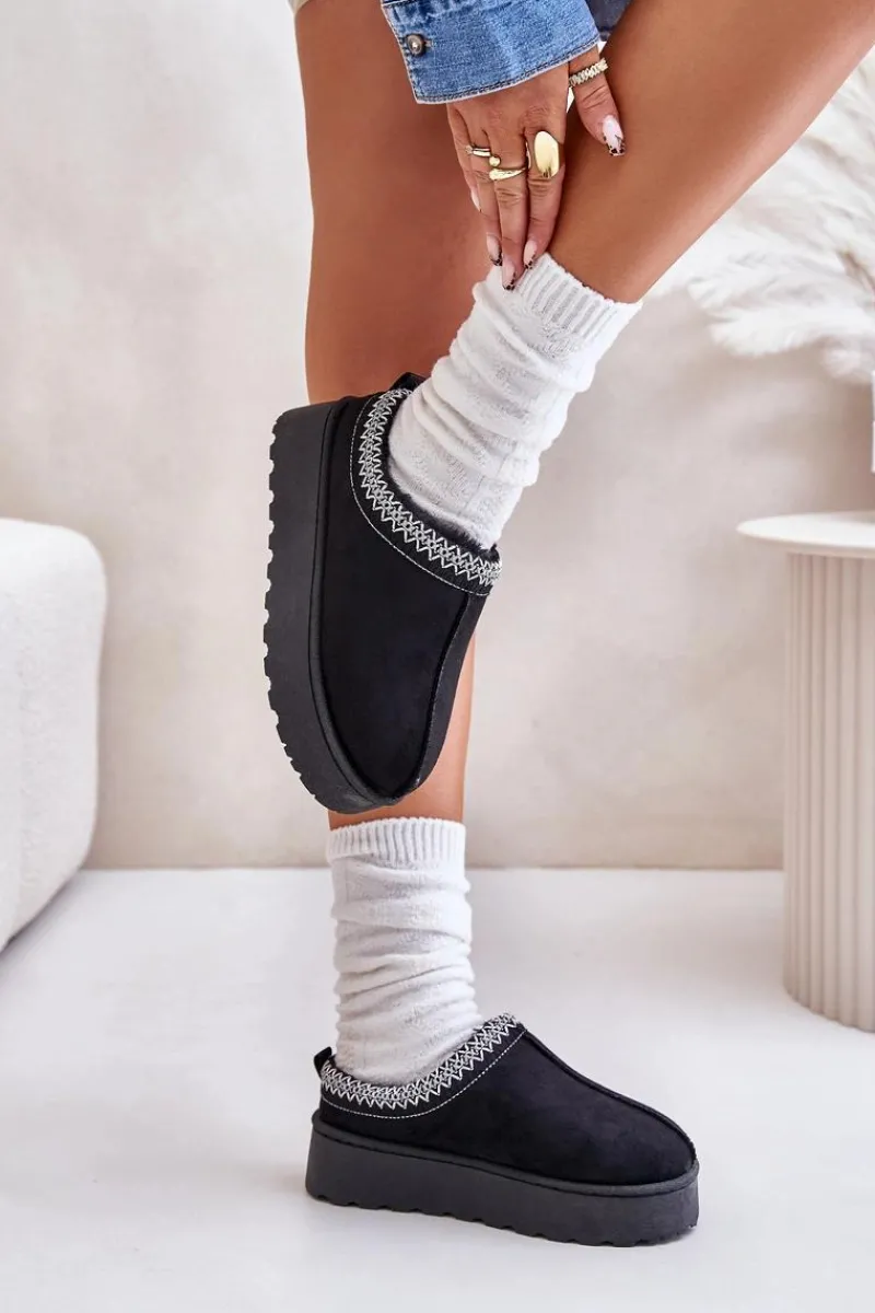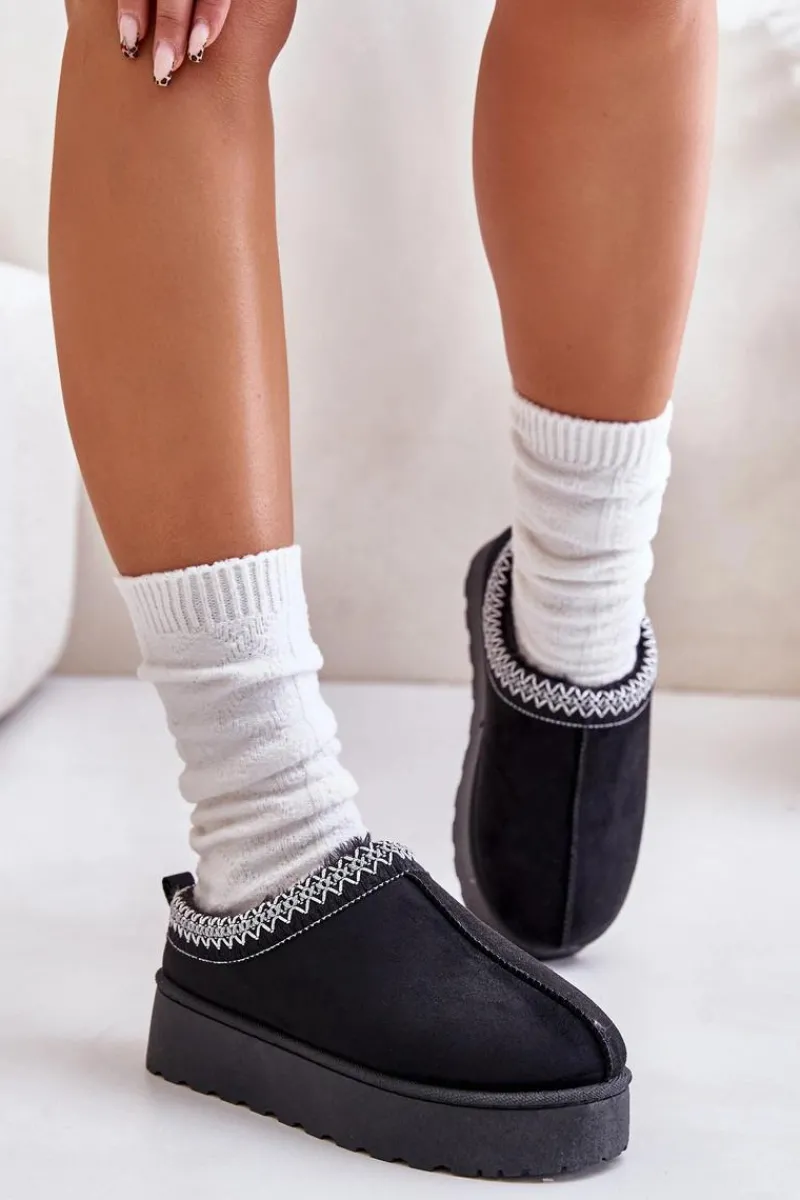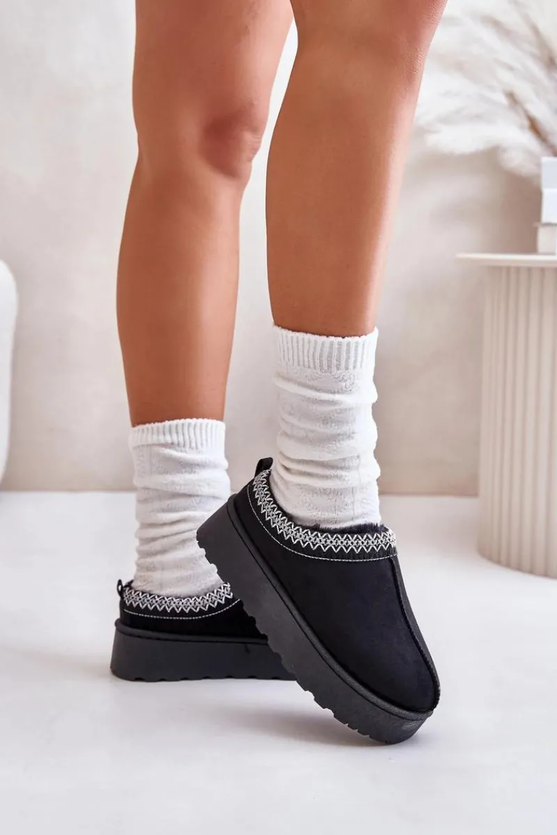 Damskie śniegowce z ozdobną lamówką. Wykonane z eko zamszu, to idealny wybór na chłodniejsze dni. Osadzone na platformie, zapewniają nie tylko styl, ale także komfort i izolację od zimna. Wnętrze butów jest ocieplone miękkim futerkiem, co gwarantuje ciepło i wygodę podczas noszenia. Te śniegowce to połączenie funkcjonalności i modnego wyglądu, doskonałe na zimowe spacery. Przy wyborze rozmiaru prosimy kierować tabelą rozmiarów.