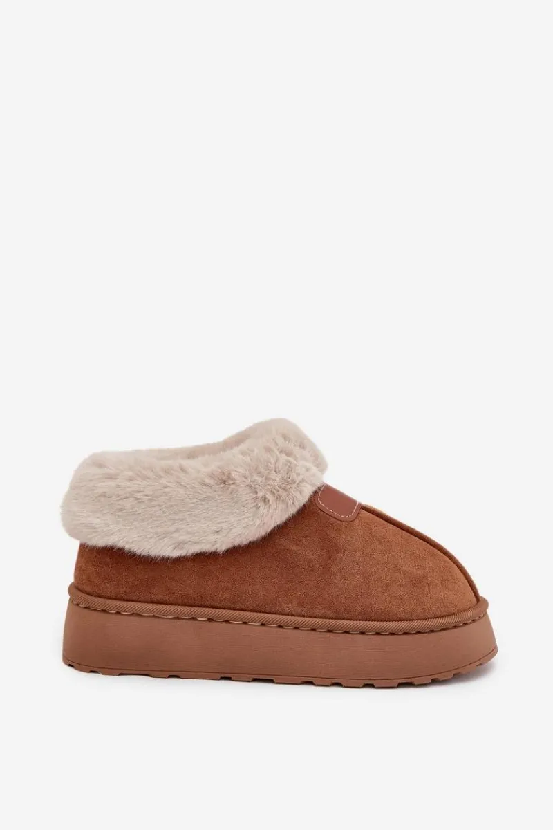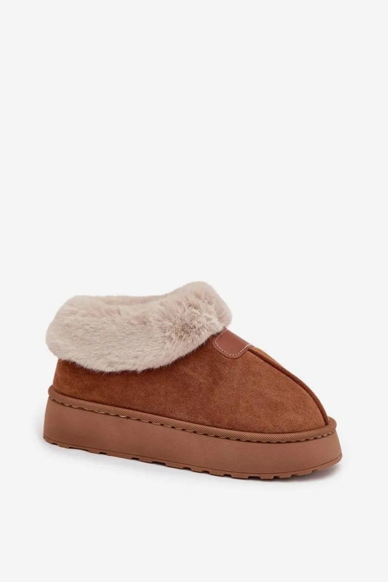 Śniegowce damskie z eko zamszu to wygodne i stylowe obuwie na chłodniejsze dni. Osadzone na praktycznej platformie skutecznie izolują od podłoża, a miękkie futerko zdobiące górę oraz wnętrze buta zapewnia ciepło i przyjemny komfort noszenia. To uniwersalny model, który doskonale sprawdzi się zarówno w domu, jak i podczas szybkich, codziennych wyjść.