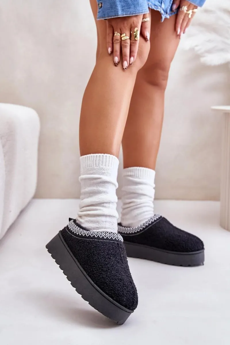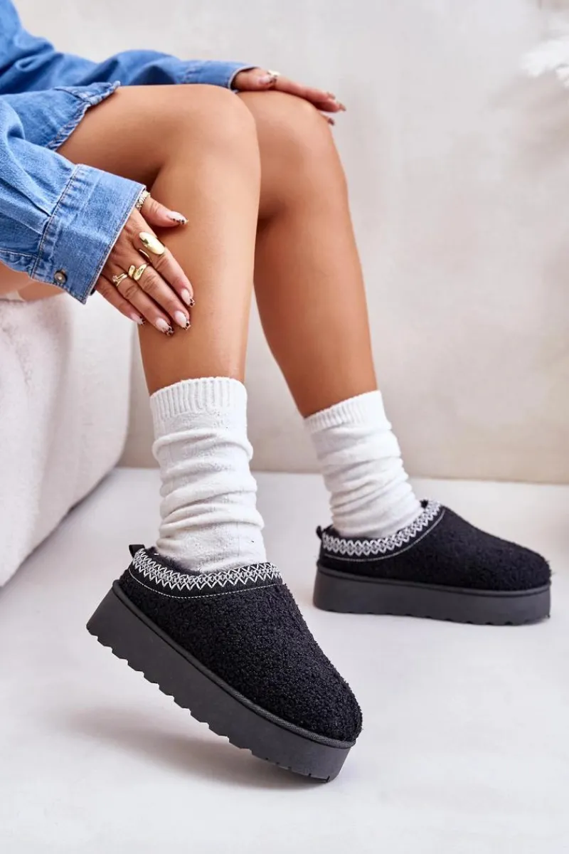 Śniegowce damskie, które łączą styl z funkcjonalnością. Cholewka wykonana z futerka typu baranek nadaje im wyjątkowego, przytulnego wyglądu. Osadzone na platformie, która zapewnia stabilność i izolację od zimna. Wnętrze ocieplone futerkiem gwarantuje komfort cieplny w chłodne dni. Dodatkowego uroku dodaje ozdobny haft na górze cholewki, który podkreśla modny charakter tych butów. Idealne na zimowe dni, kiedy chcesz wyglądać stylowo i czuć się wygodnie. Przy wyborze rozmiaru prosimy kierować tabelą rozmiarów.