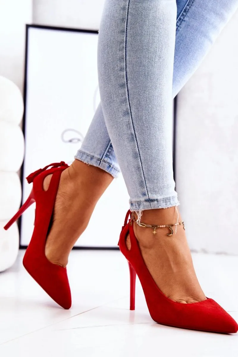Szpilki Zamszowe>Boto Szpilki Damskie Zamszowe W Szpic Czerwone Leven