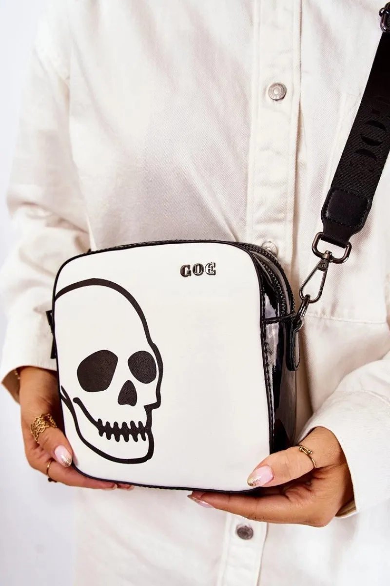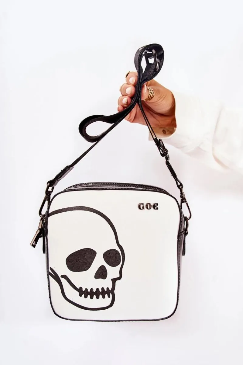 Modna torebka od marki GOE powinna znaleźć się właśnie w Twojej szafie! Została wykonana z wysokiej jakości eko skóry. Na przodzie znajduje się logo marki GOE oraz ozdobny motyw z czaszką i kwiatami. Torebka posiada dwie komory zamykane na zamek błyskawiczny. W jednej z nich znajduje się otwarta kieszonka, natomiast w drugiej kieszonka zamykana na suwak. Podszewka wykonana z tkaniny w ozdobny wzór. Dodatkowo z tyłu torebki znajduje się kieszonka zamykana na suwak. Listonoszka ta posiada jeden regulowany, odpinany pasek.