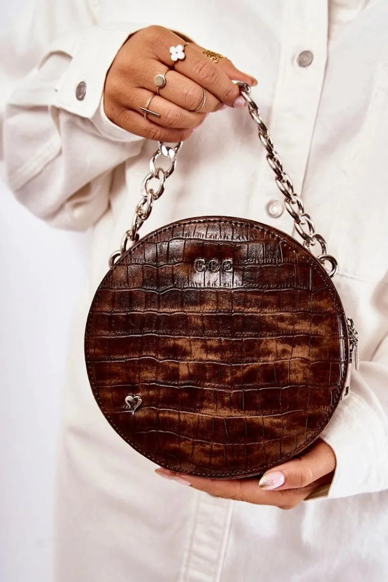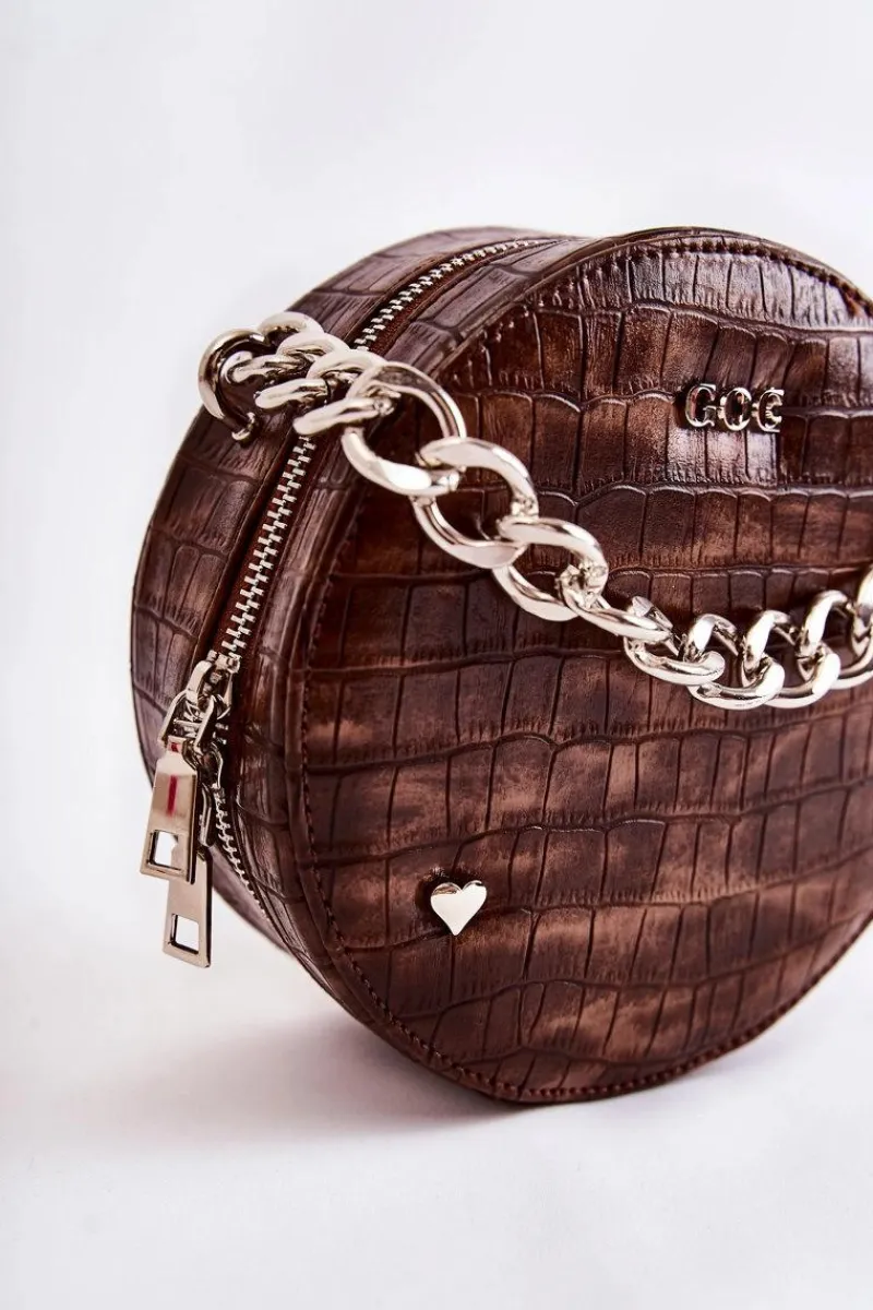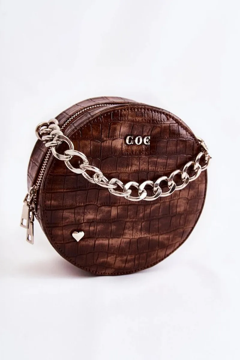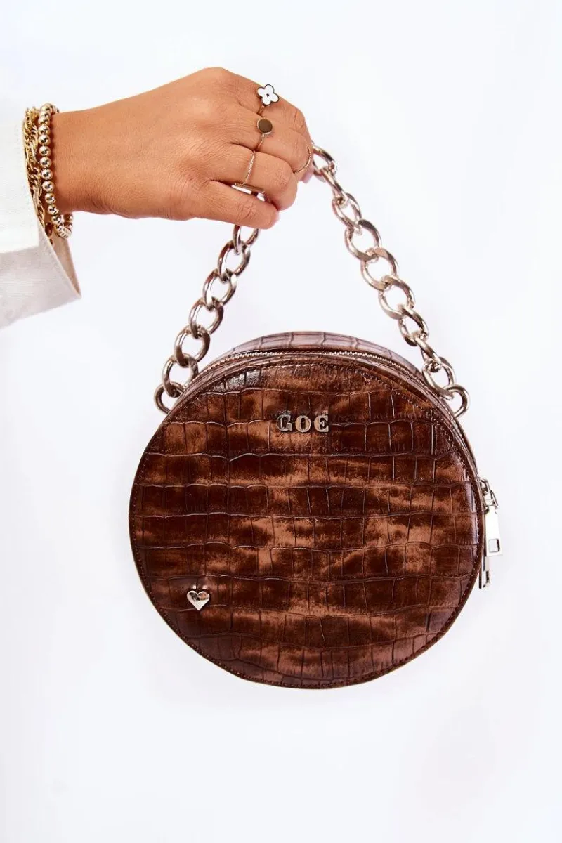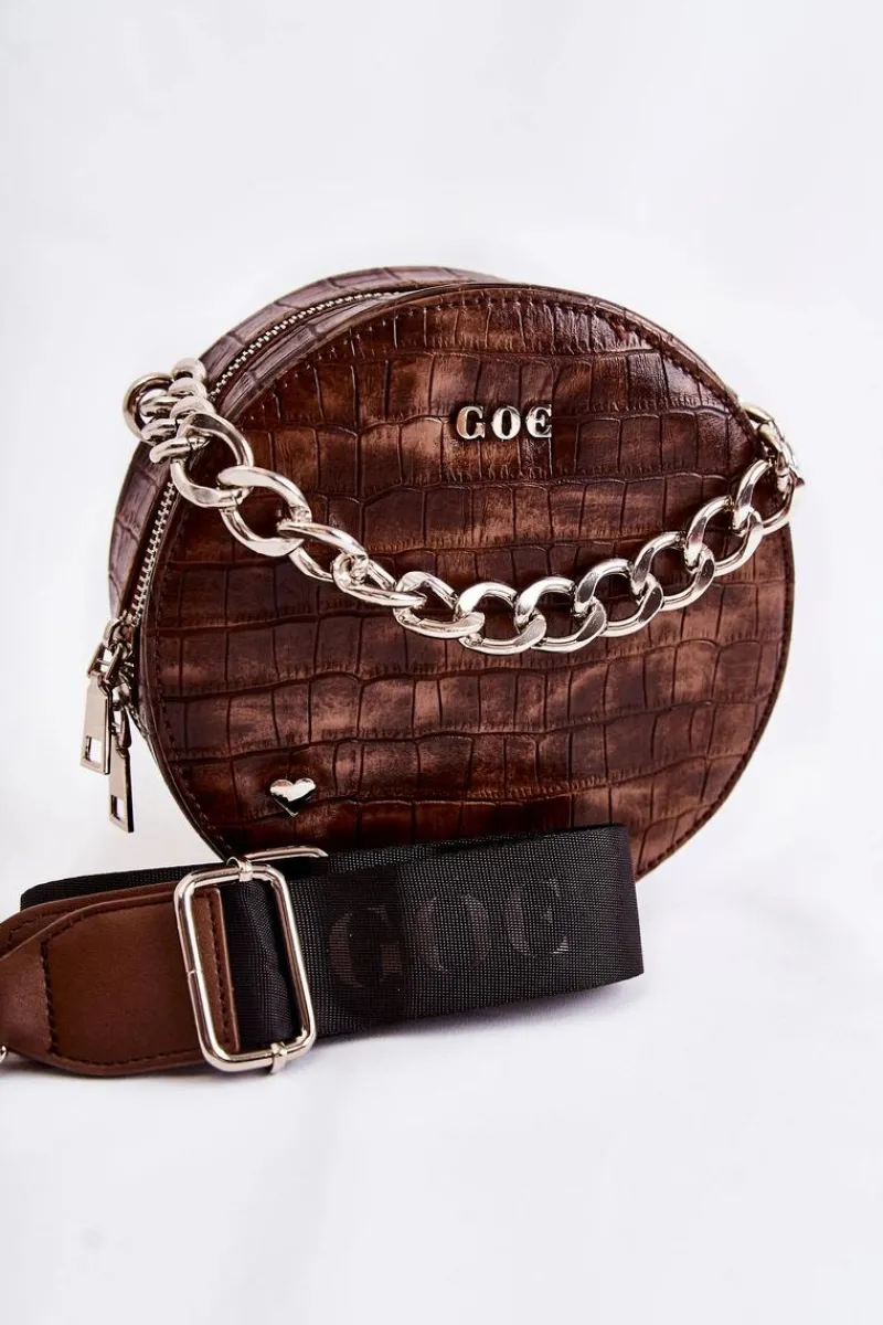 Modna torebka w fasonie kuferka od marki GOE! Wykonana z wysokiej jakości eko skóry. Na przodzie znajduje się logo marki GOE oraz ozdobny emblemat w postaci serduszka. Torebka posiada jedną komorę, która jest zamykana na zamek błyskawiczny. W środku znajduje się jedna otwarta kieszonka oraz jedna zamykana na suwak. Podszewka wykonana z tkaniny w ozdobny wzór. Torebka posiada jeden regulowany, odpinany pasek.