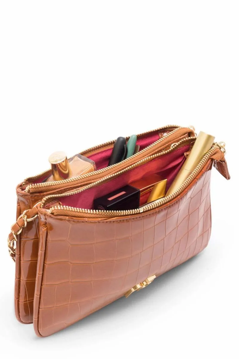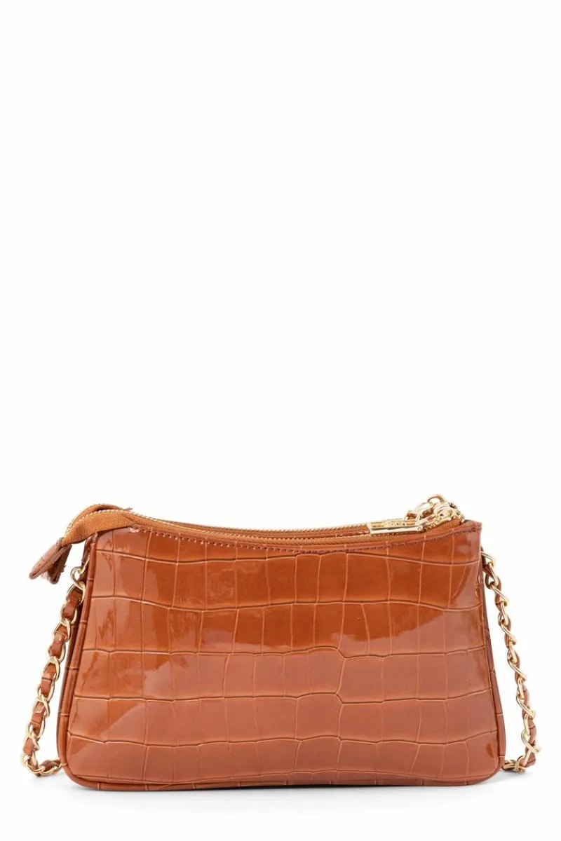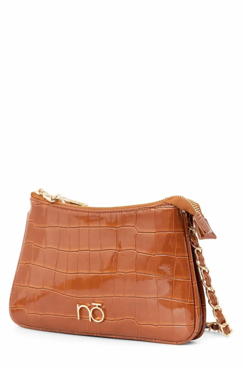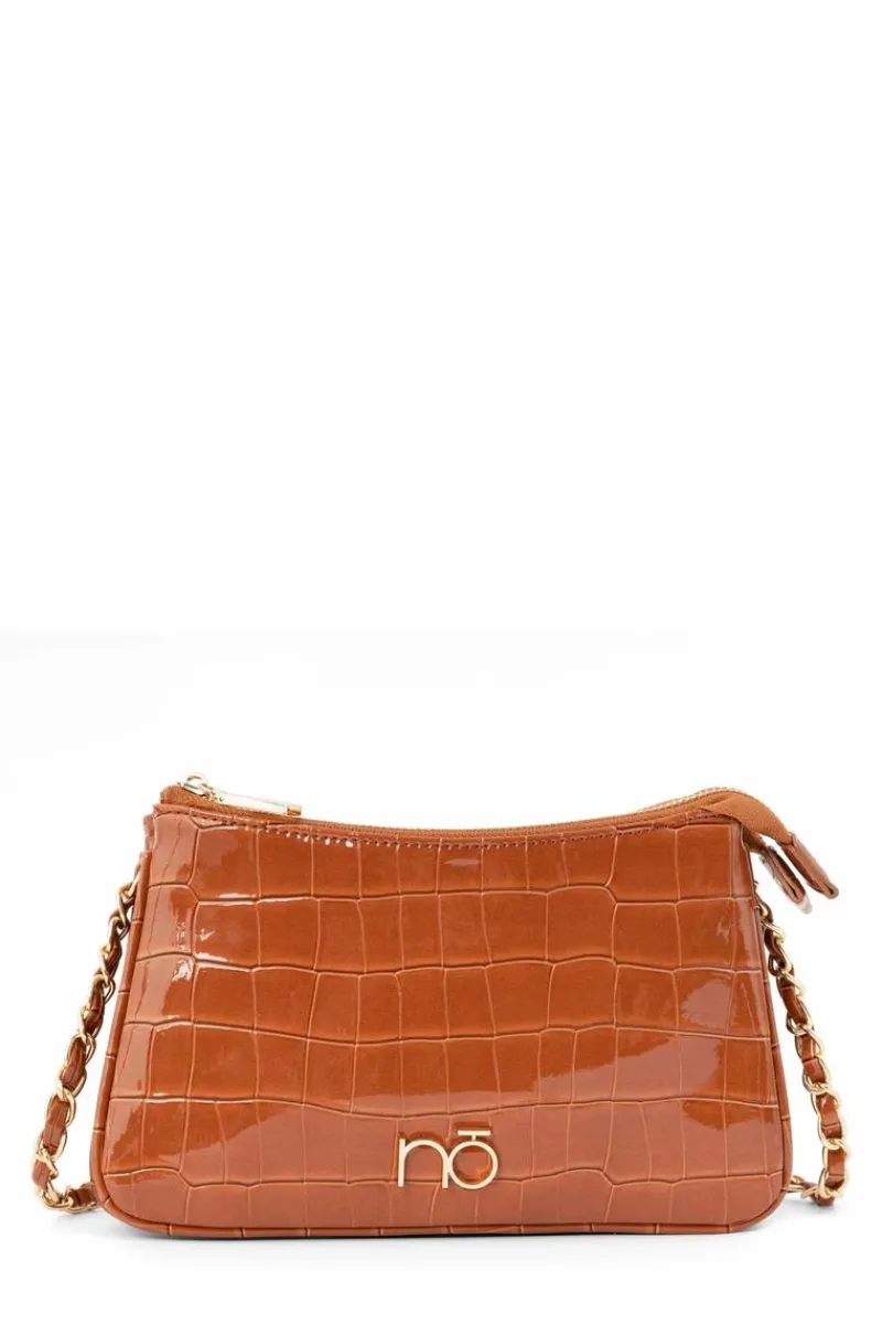 Damska torebka marki NOBO została wykonana z wysokiej jakości materiału. Na przodzie znajduje się logo marki NOBO. Torebka posiada dwie komory, które są zamykane na zamek błyskawiczny. W środku jednej komory znajduje się kieszonka zamykana na suwak , natomiast w drugiej znajduje się otwarta kieszonka. Torebka posiada ozdobny, nieodpinany łańcuch. Pomiędzy komorami znajduje się ukryta kieszonka zapinana na zatrzask.
