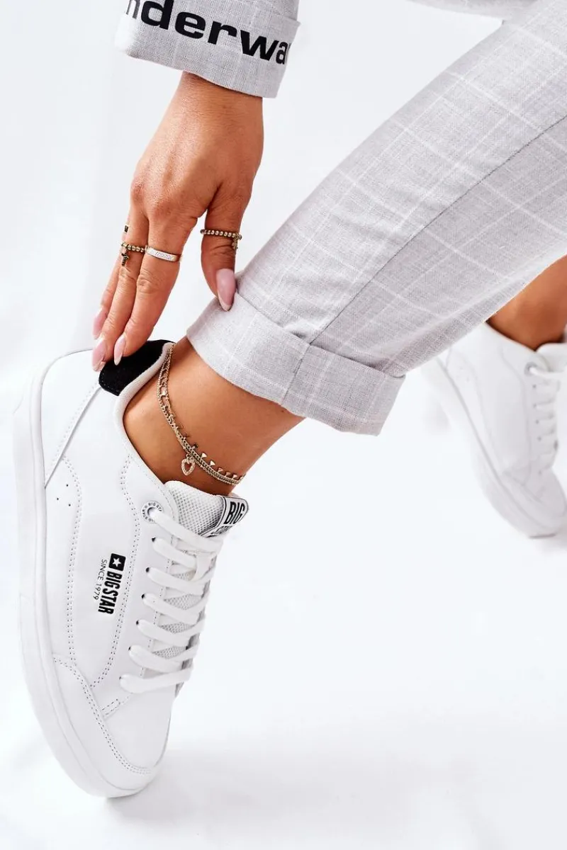 Damskie sportowe buty od polskiej marki Big Star. Buty posiadają antypoślizgową podeszwę oraz wyjątkową wkładkę MEMORY FOAM SYSTEM. Wkładka zapamiętuje kształt stopy, zapewnia doskonałe dopasowanie, absorbuje wstrząsy, jest odporna na odkształcenia oraz pozwala na odparowywanie wilgoci i regulacje temperatury. Koniecznie sprawdź całą naszą kolekcję butów BIG STAR. Przy wyborze rozmiaru prosimy sugerować się tabelą rozmiarów.