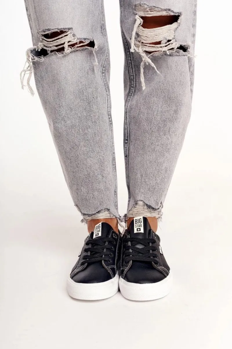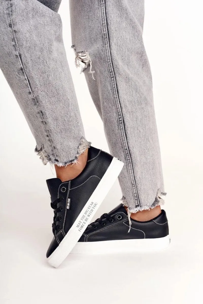 Trampki Damskie Big Star|Trampki Damskie Niskie>Big Star Shoes Damskie Skórzane Tenisówki Z Napisem BIG STAR EE274315 Czarne