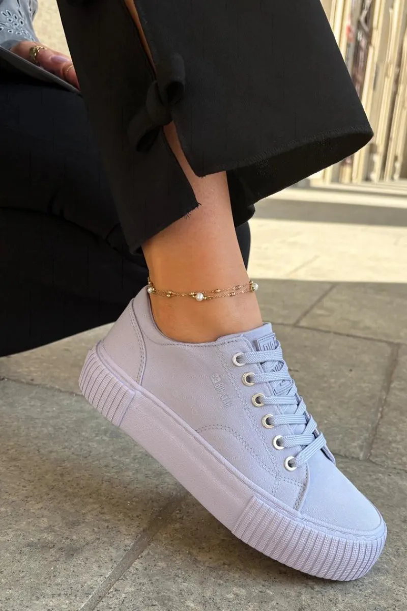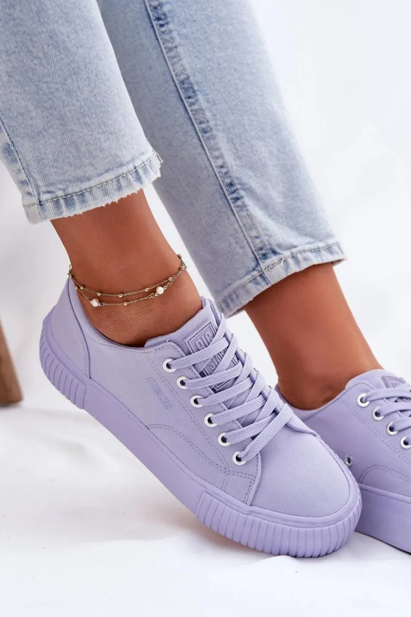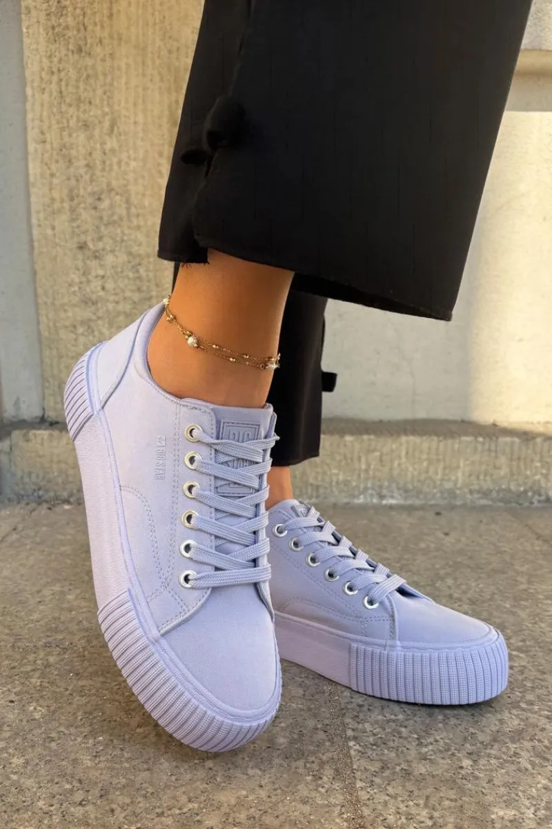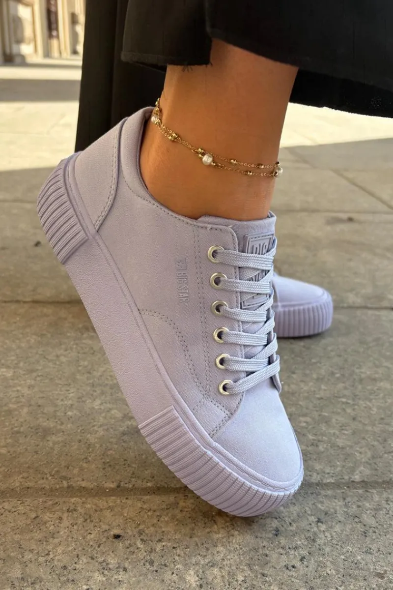 Trampki damskie od marki Big Star, wykonane z materiału tekstylnego. Idealne na co dzień, te trampki łączą wygodę z prostym, ponadczasowym stylem. Osadzone na platformie, która delikatnie unosi sylwetkę oraz zapewnia dodatkową wysokość i komfort. Doskonale pasują do wielu casualowych stylizacji, zapewniając komfort i lekkość na każdym kroku.
