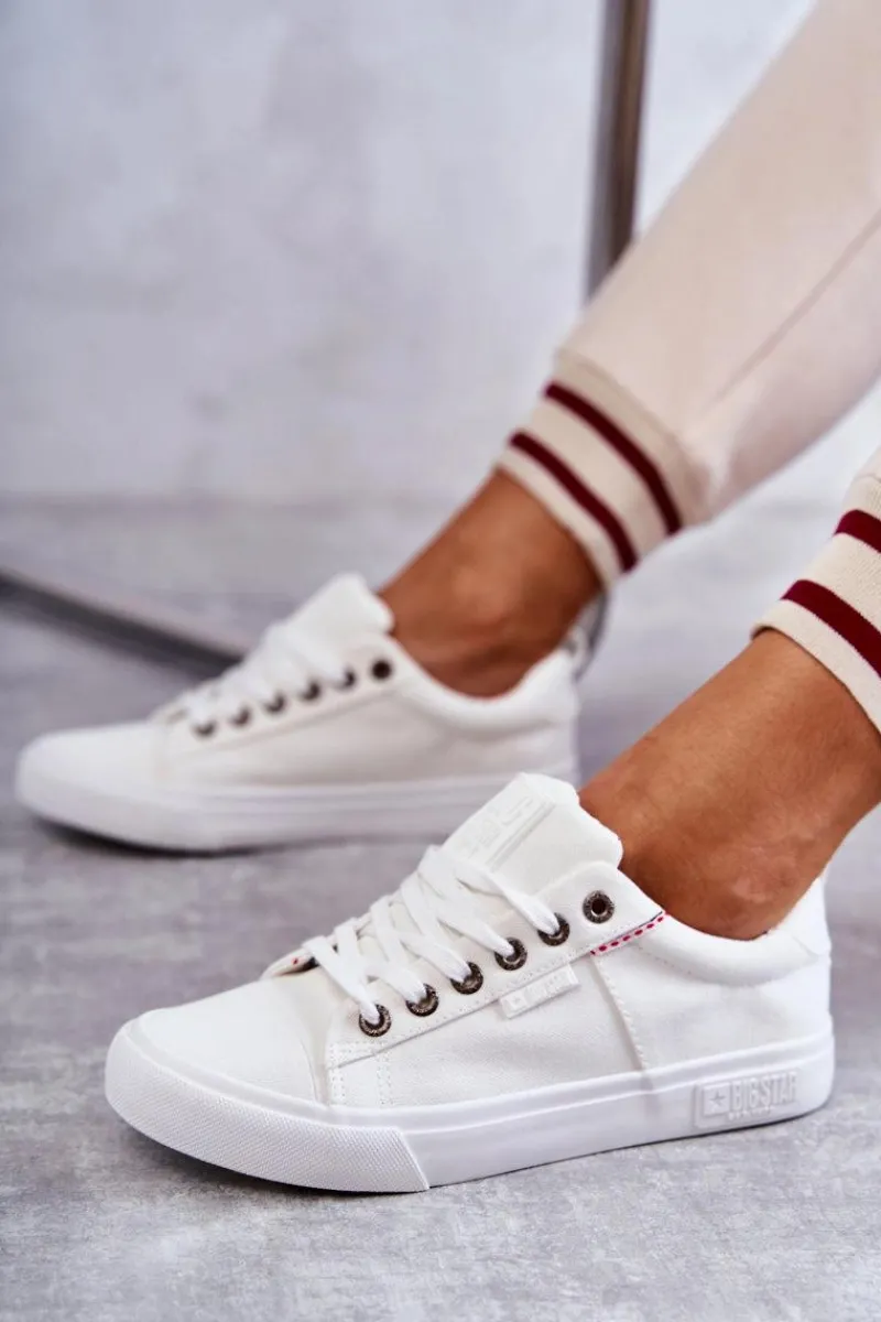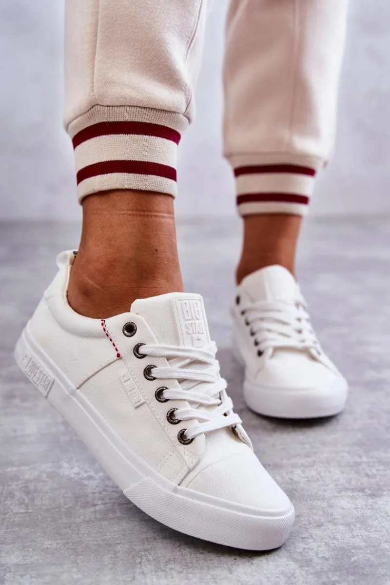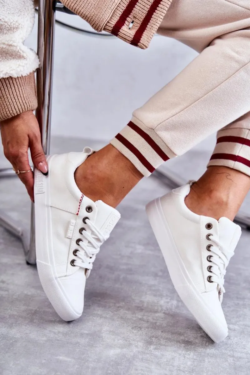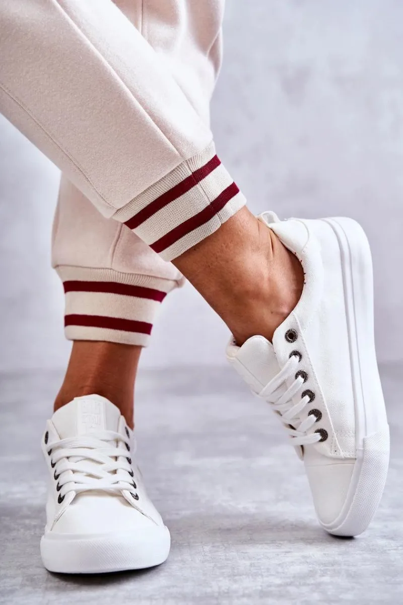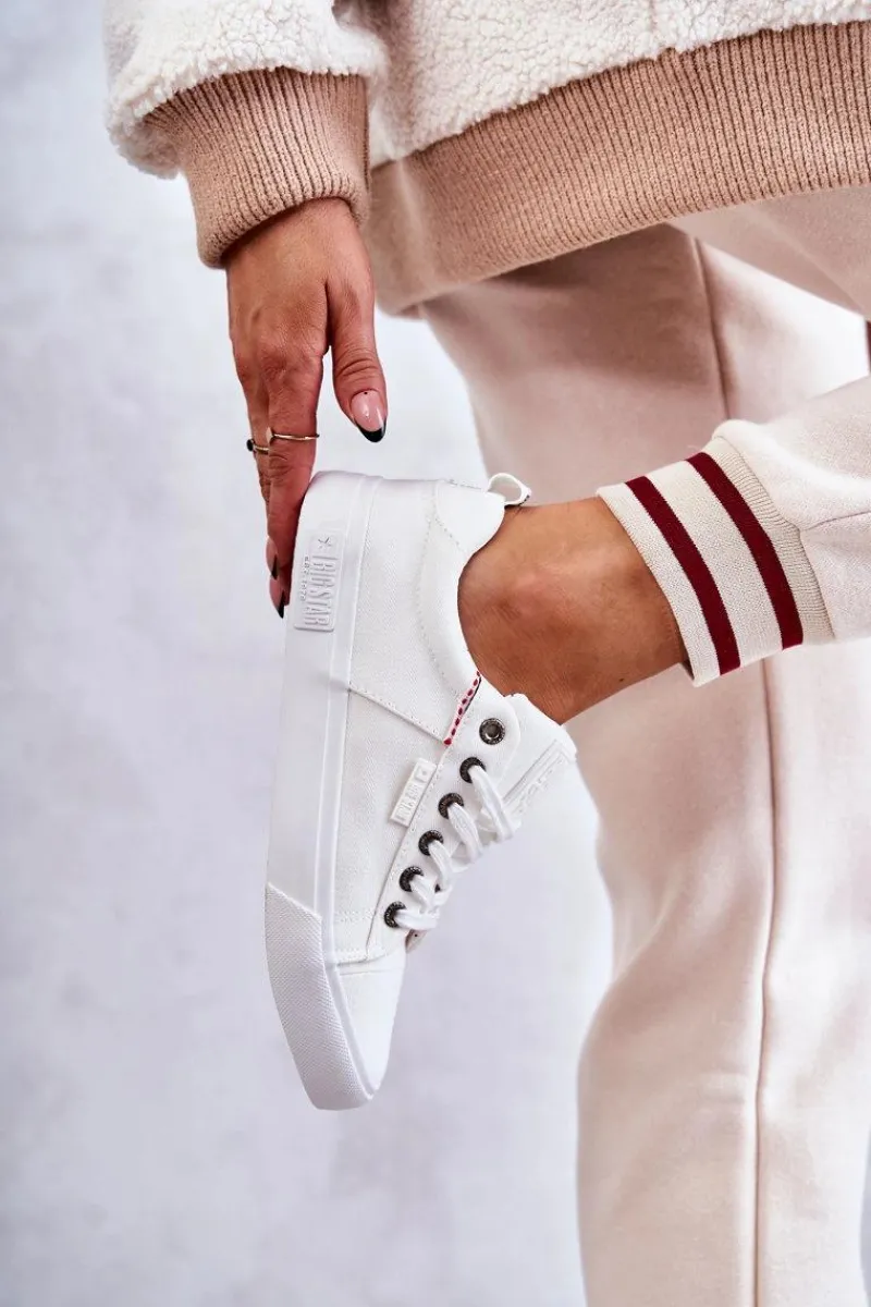Klasyczne damskie tenisówki posiadają niską cholewkę do kostki. Zostały wykonane z materiału tekstylnego. Wyściółka w ciekawy wzór. Model sznurowany. Platforma wraz z podeszwą zostały wykonane z gumowego tworzywa, co sprawia, że te trampki są antypoślizgowe. Dodatkowo buty posiadają bootstrapa, czyli pętelkę ułatwiającą zakładanie i ściąganie obuwia. Przy wyborze rozmiaru prosimy sugerować się tabelą rozmiarów.