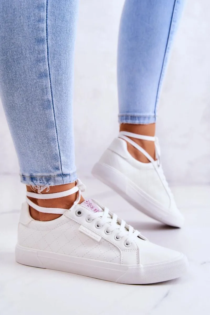 Damskie trampki marki CROSS JEANS. Klasyczna forma pasuje do wielu stylizacji. Buty dobrze dopasowują się do kształtu stopy, posiadają miękką, materiałową wkładkę. Wykonane są z wysokiej jakości przeszywanej eko skóry. Antypoślizgowa podeszwa. Koniecznie sprawdź całą naszą kolekcję butów marki CROSS JEANS. Przy wyborze rozmiaru prosimy sugerować się tabelą rozmiarów.