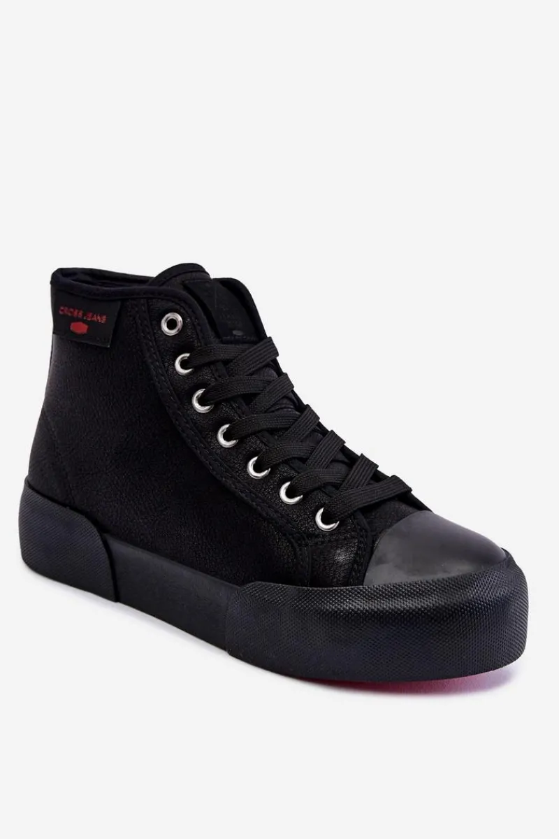Jeśli szukasz idealnych trampek, to firma Cross Jeans ma coś specjalnego! Wysokie trampki sięgające powyżej kostek. Model klasycznie wiązany z ozdobnym logo na cholewce oraz języku. Dodatkowym atutem jest solidna antypoślizgowa podeszwa. Wykonane ze skóry ekologicznej. Buty zostały ocieplone miękkim kocem obuwniczym. Idealnie uzupełnią wiele jesiennych stylizacji. Musisz je mieć! Przy wyborze rozmiaru prosimy sugerować się tabelą rozmiarów.