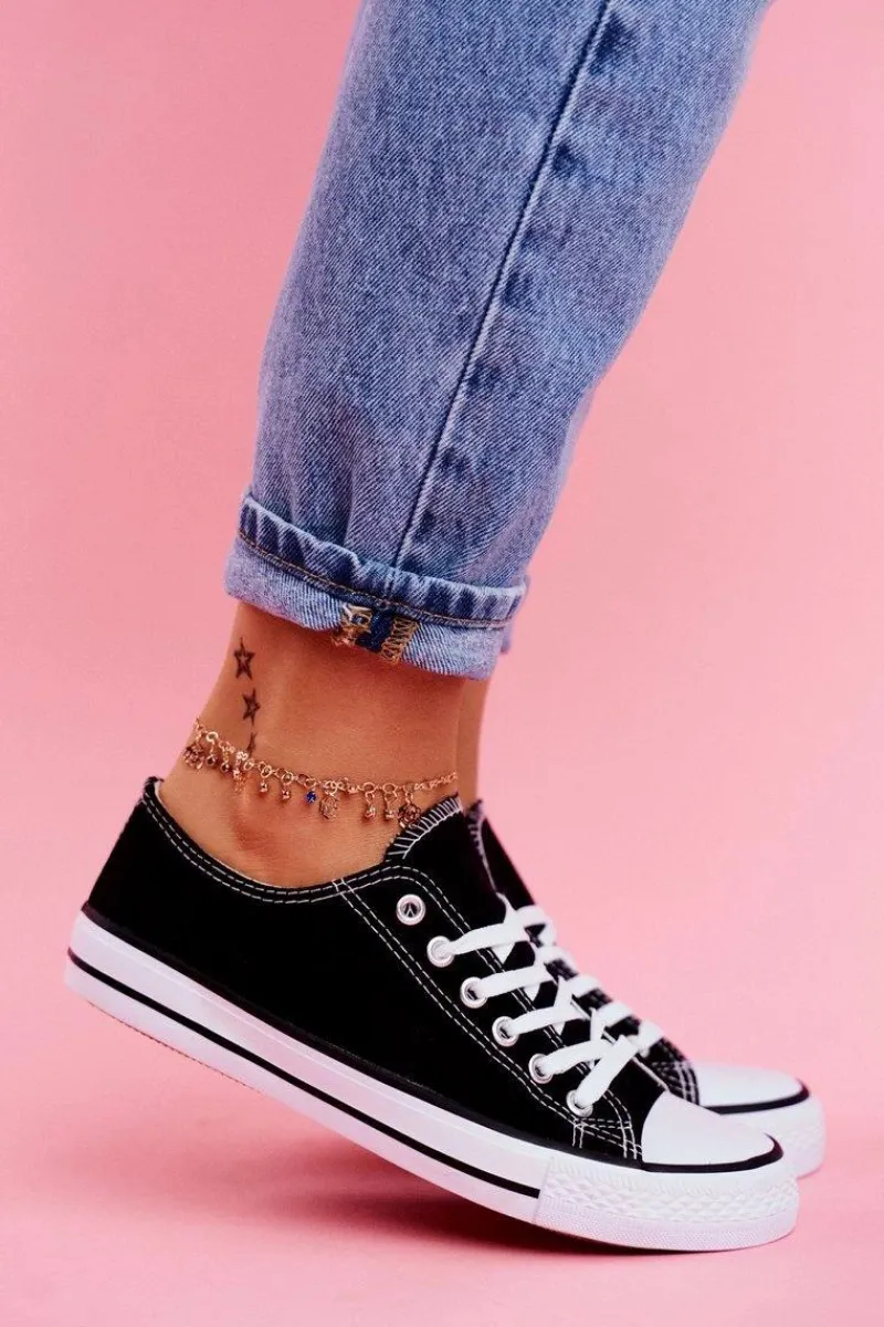 Klasyczne trampki damskie. Buty posiadają gumową podeszwę oraz miękką cholewkę. Ponadczasowy model, dostępny w wielu pięknych kolorach! Przy wyborze rozmiaru prosimy sugerować się tabelą rozmiarów.