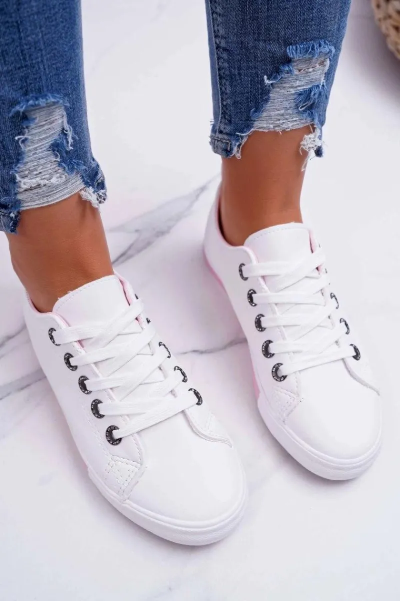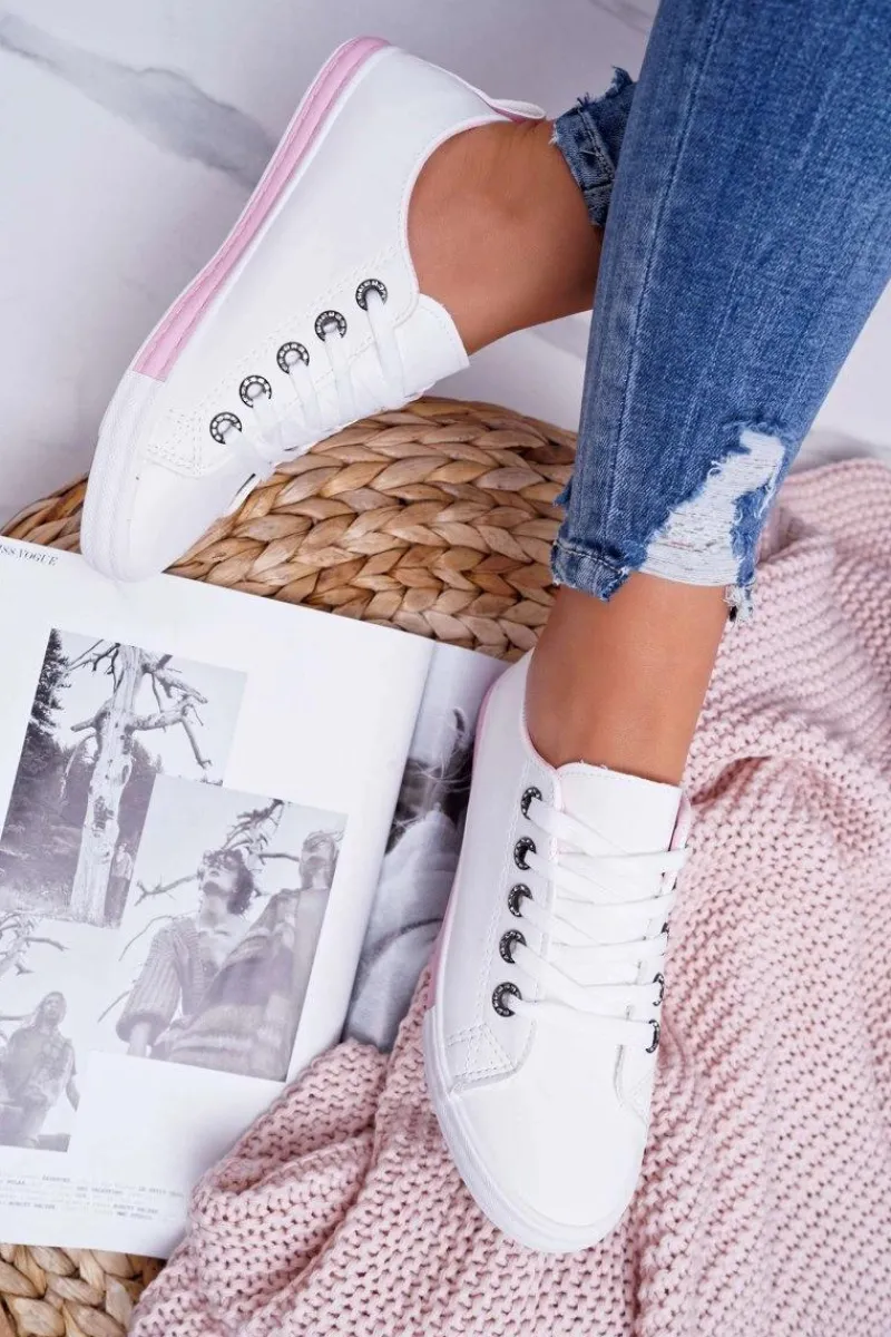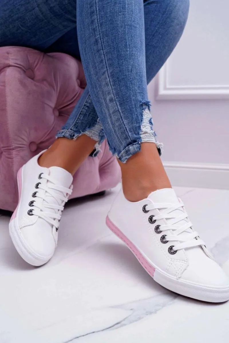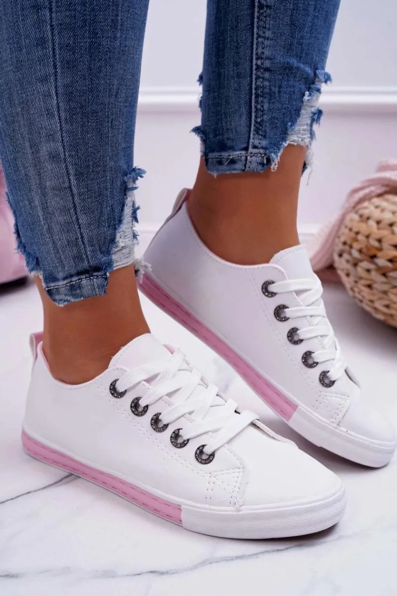 Trampki Damskie Niskie>Boto Trampki Damskie Białe Różowy Pasek Nigrid2