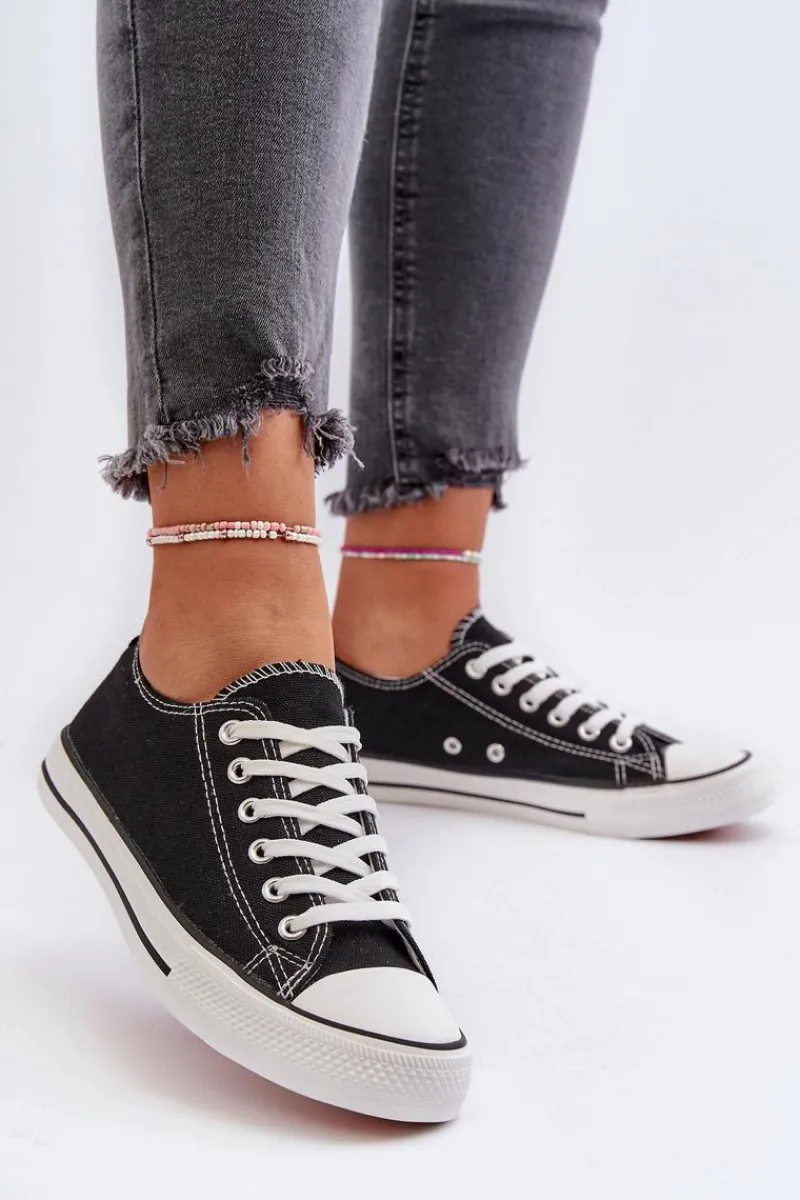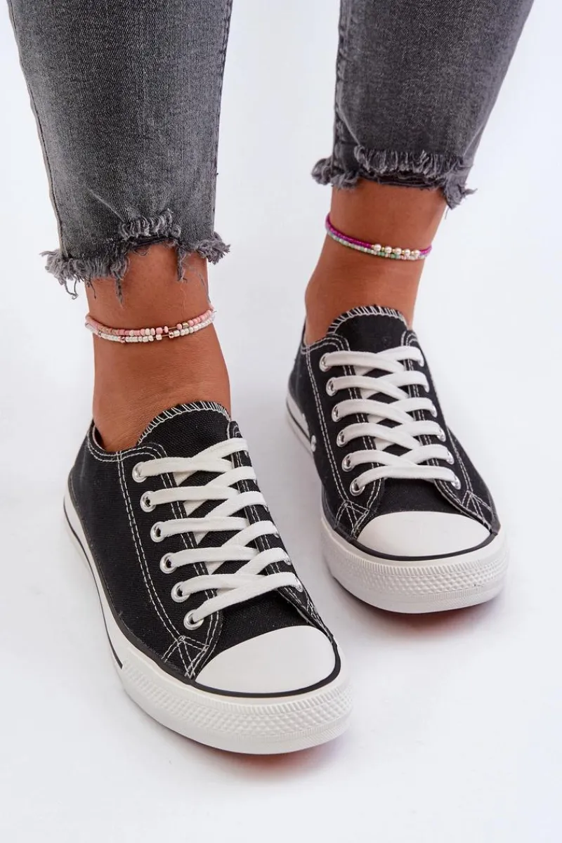 Trampki damskie w klasycznym stylu to niezawodny wybór na każdą okazję. Niski fason i sznurowane zapięcie zapewniają idealne dopasowanie oraz wygodę użytkowania. Te uniwersalne trampki doskonale pasują zarówno do codziennych, casualowych outfitów, jak i sportowych zestawów. Przy wyborze rozmiaru prosimy sugerować się tabelą rozmiarów.