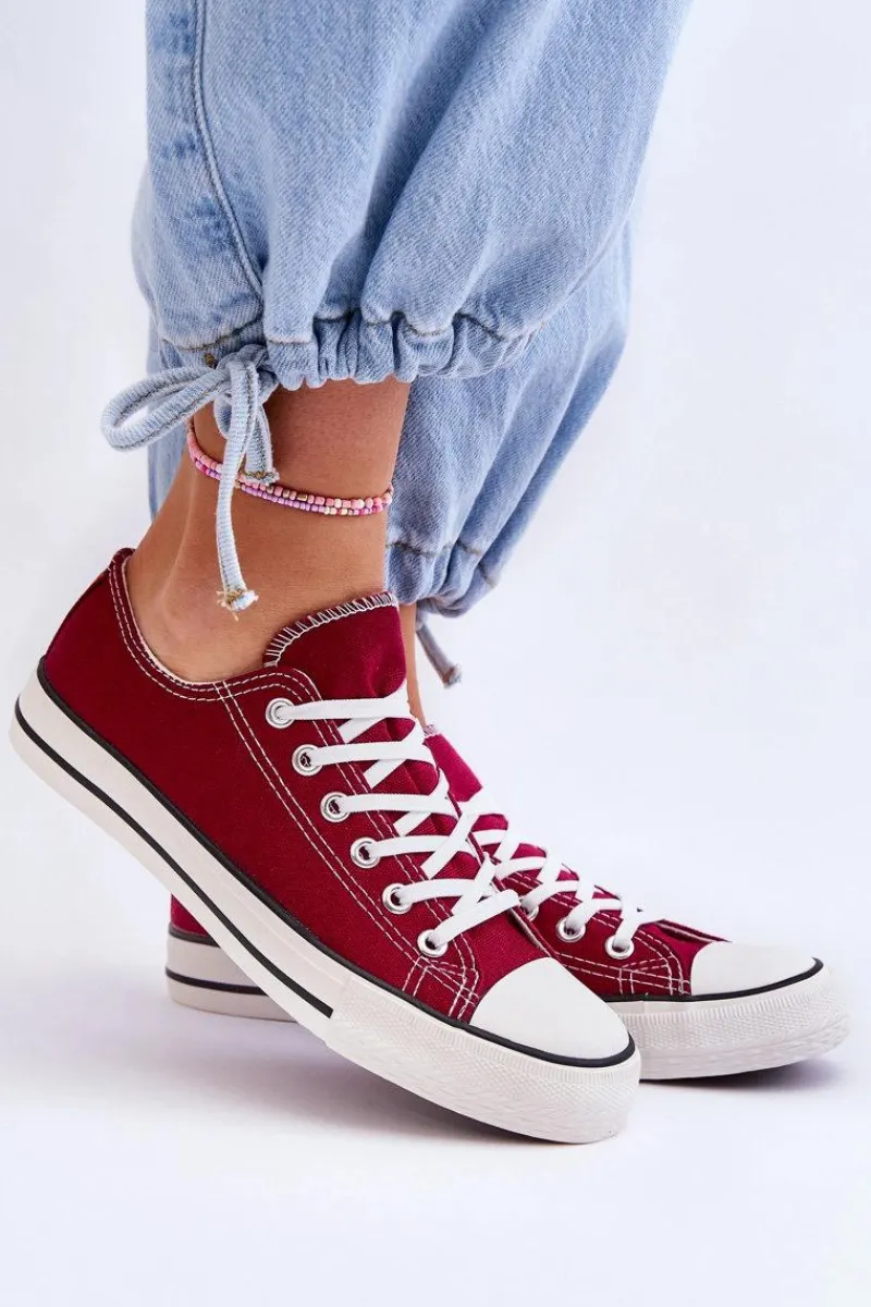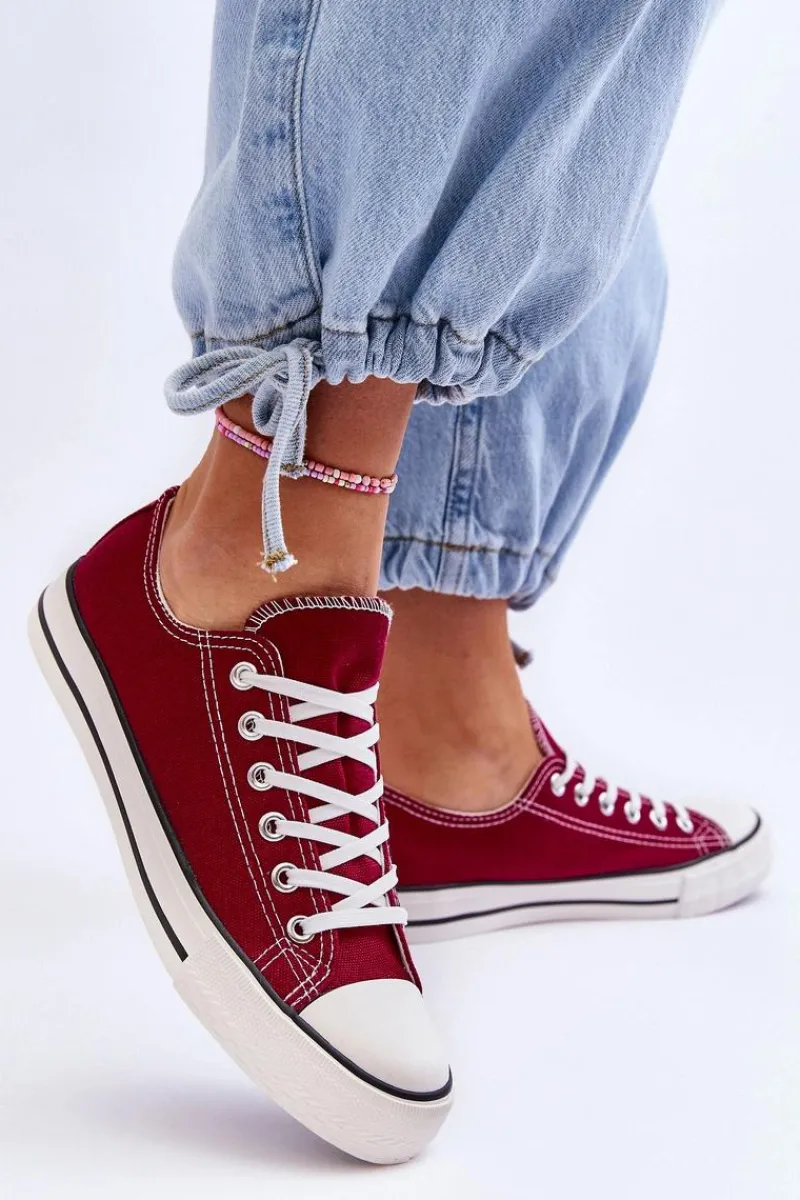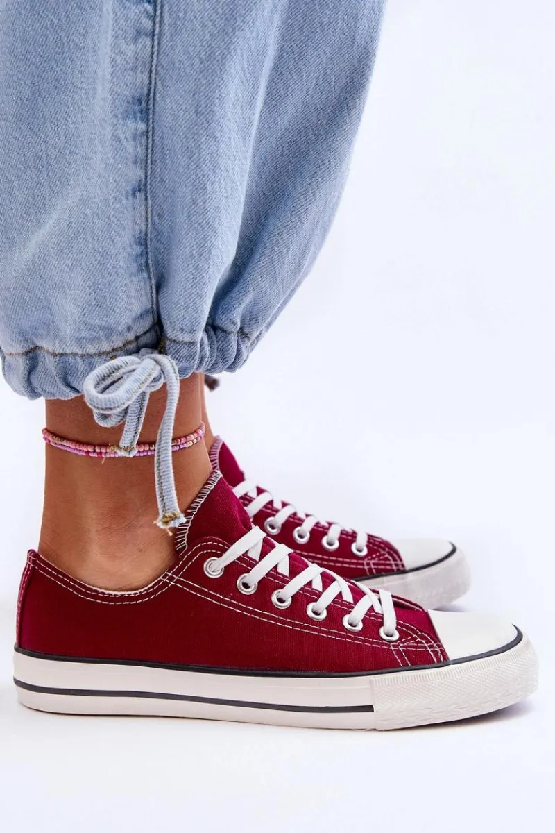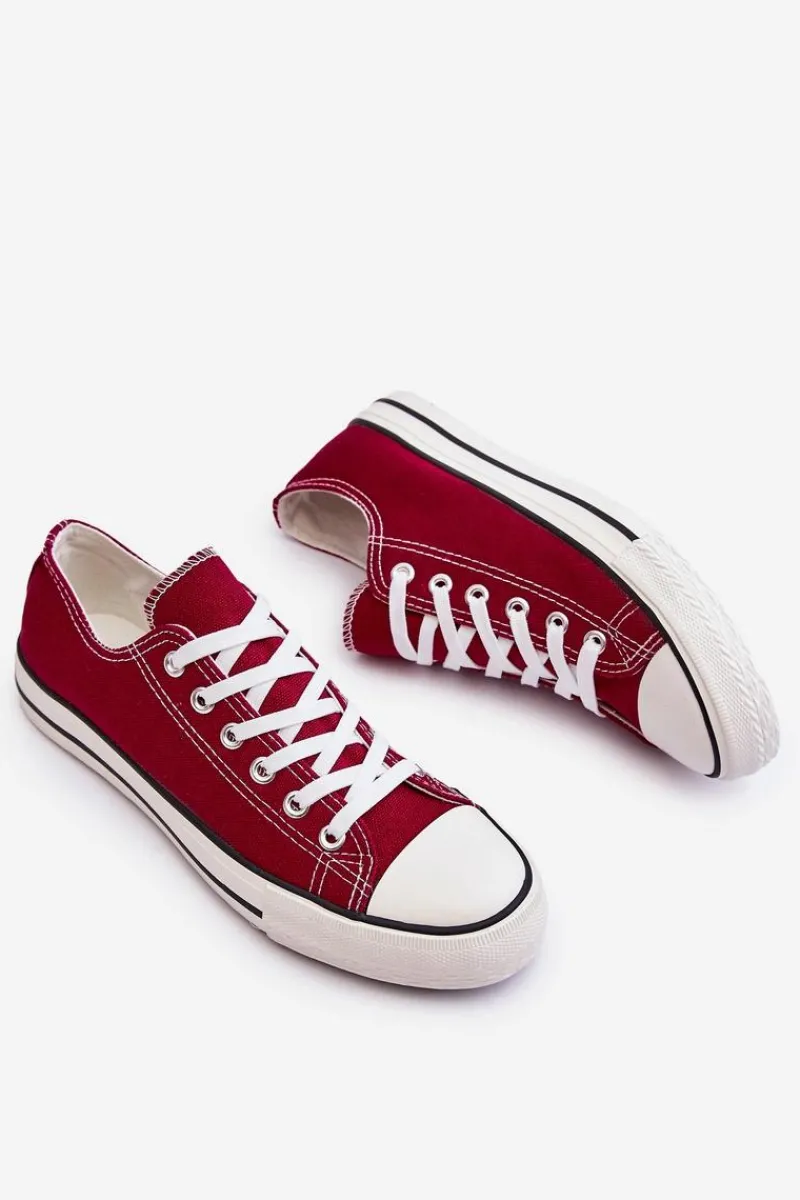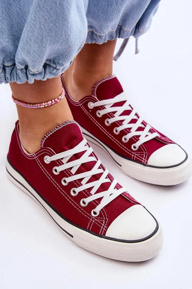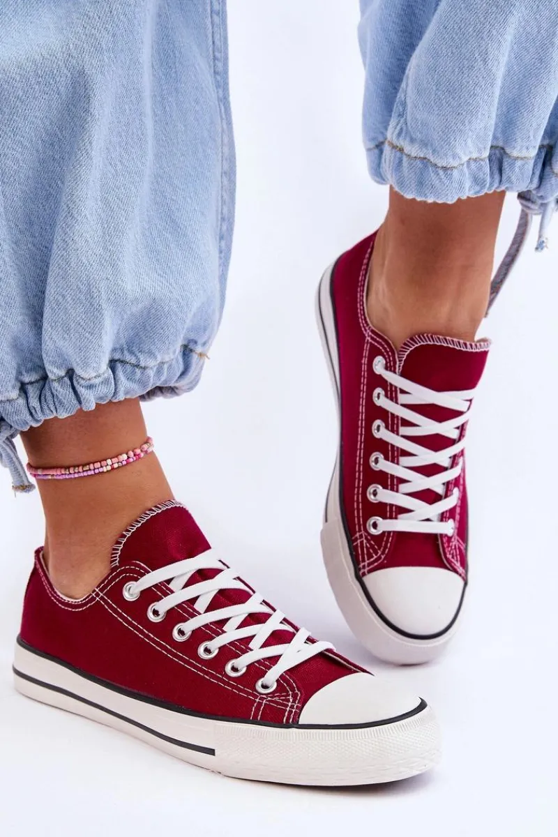 Trampki Damskie Niskie>Boto Trampki Klasyczne Niskie Damskie Bordowe Vegas Czerwony
