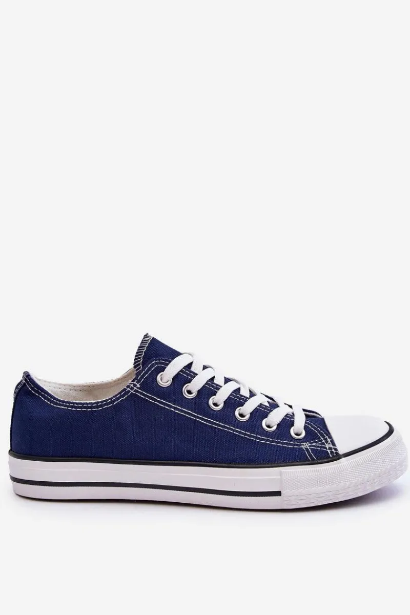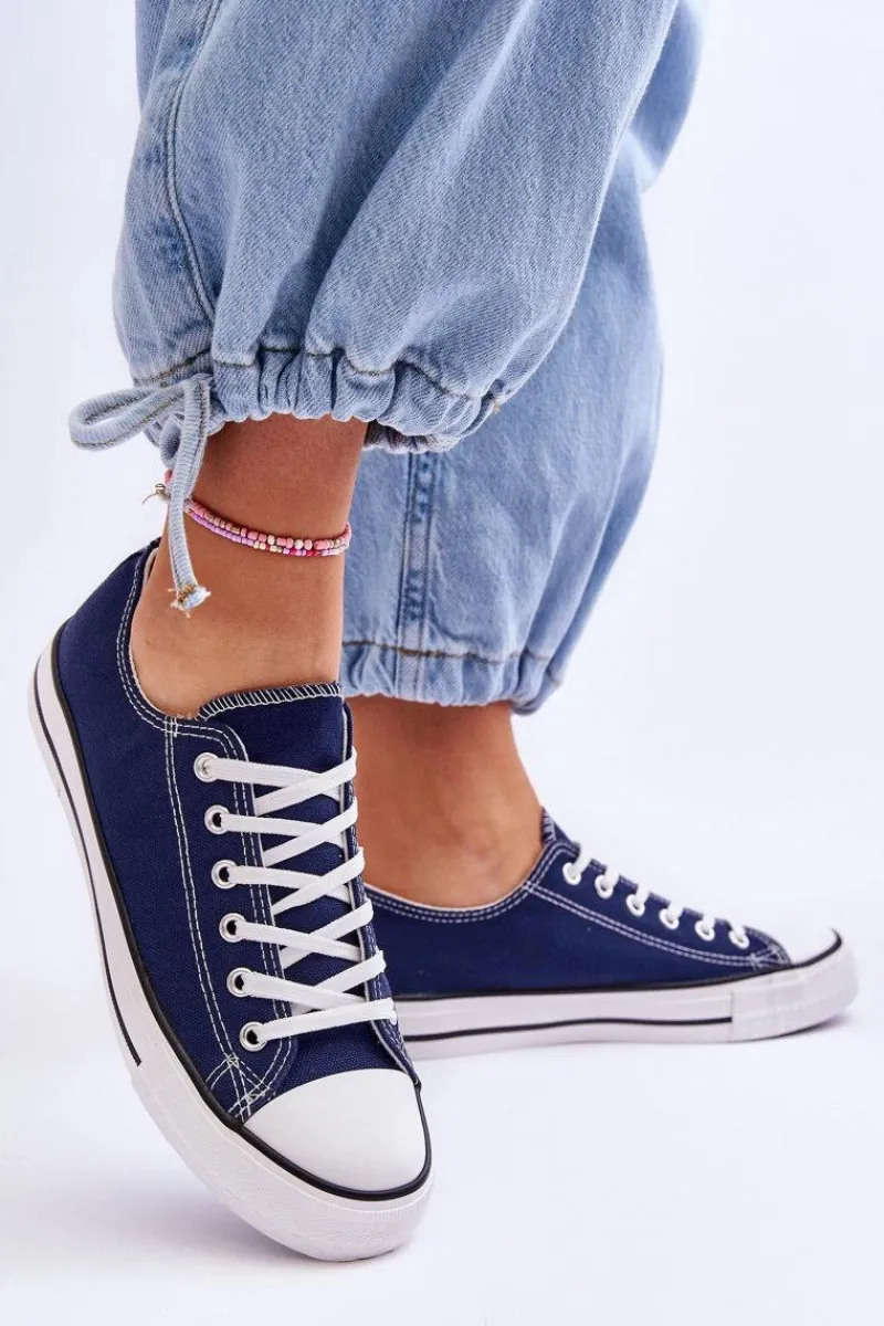 Klasyczne, sznurowane trampki damskie zostały wykonane z materiału tekstylnego. Posiadają gumową podeszwę, która jest dodatkowo antypoślizgowa. Ponadczasowy model, który powinnaś mieć w swojej szafie! Z pewnością założysz je do wielu stylizacji! Nosek został wzmocniony gumowym tworzywem. Wygodna, materiałowa wkładka zapewni komfort podczas użytkowania. Przy wyborze rozmiaru prosimy sugerować się tabelą rozmiarów.