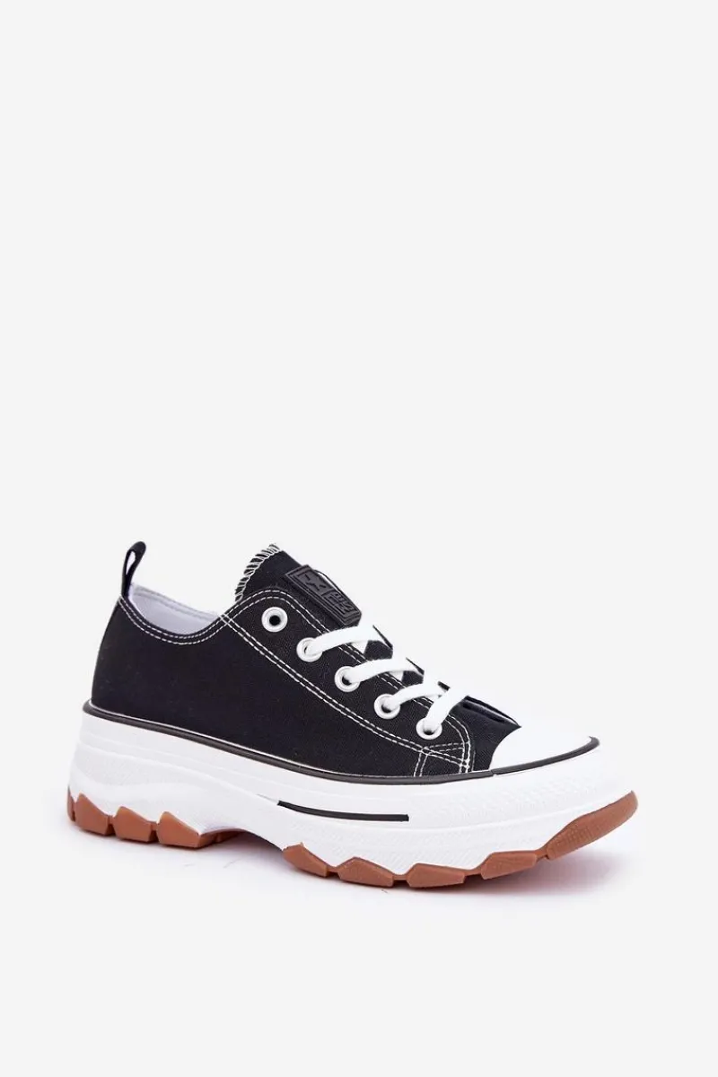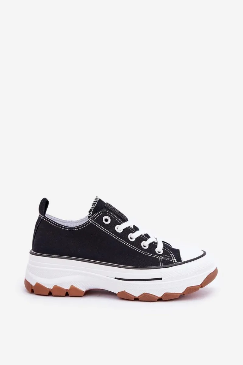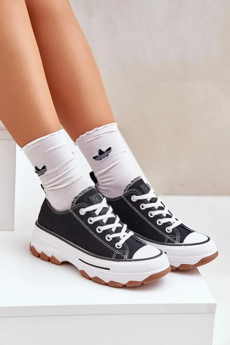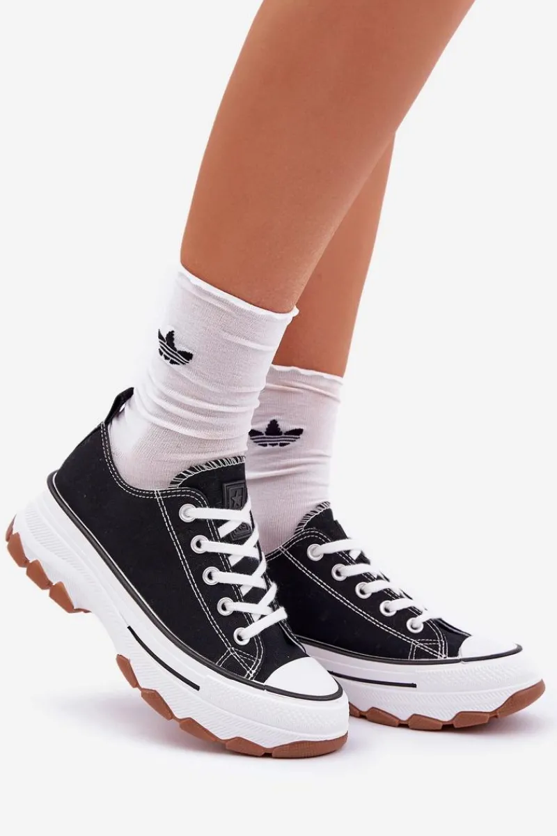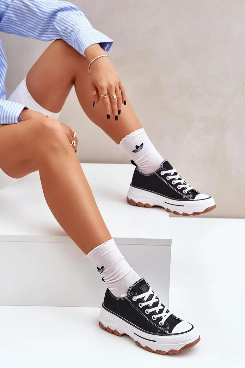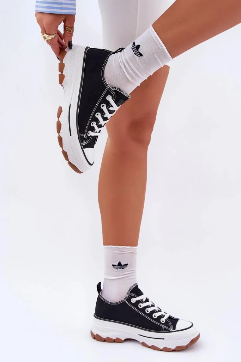 Trampki damskie wykonane z materiału tekstylnego. Osadzone na masywnej platformie, która unosi sylwetkę, a także nadaje każdej stylizacji niepowtarzalny charakter. Ten model jest niezbędny dla każdej kobiety pragnącej połączyć wygodę z modnym wizerunkiem. Przy wyborze rozmiaru prosimy sugerować się tabelą rozmiarów.