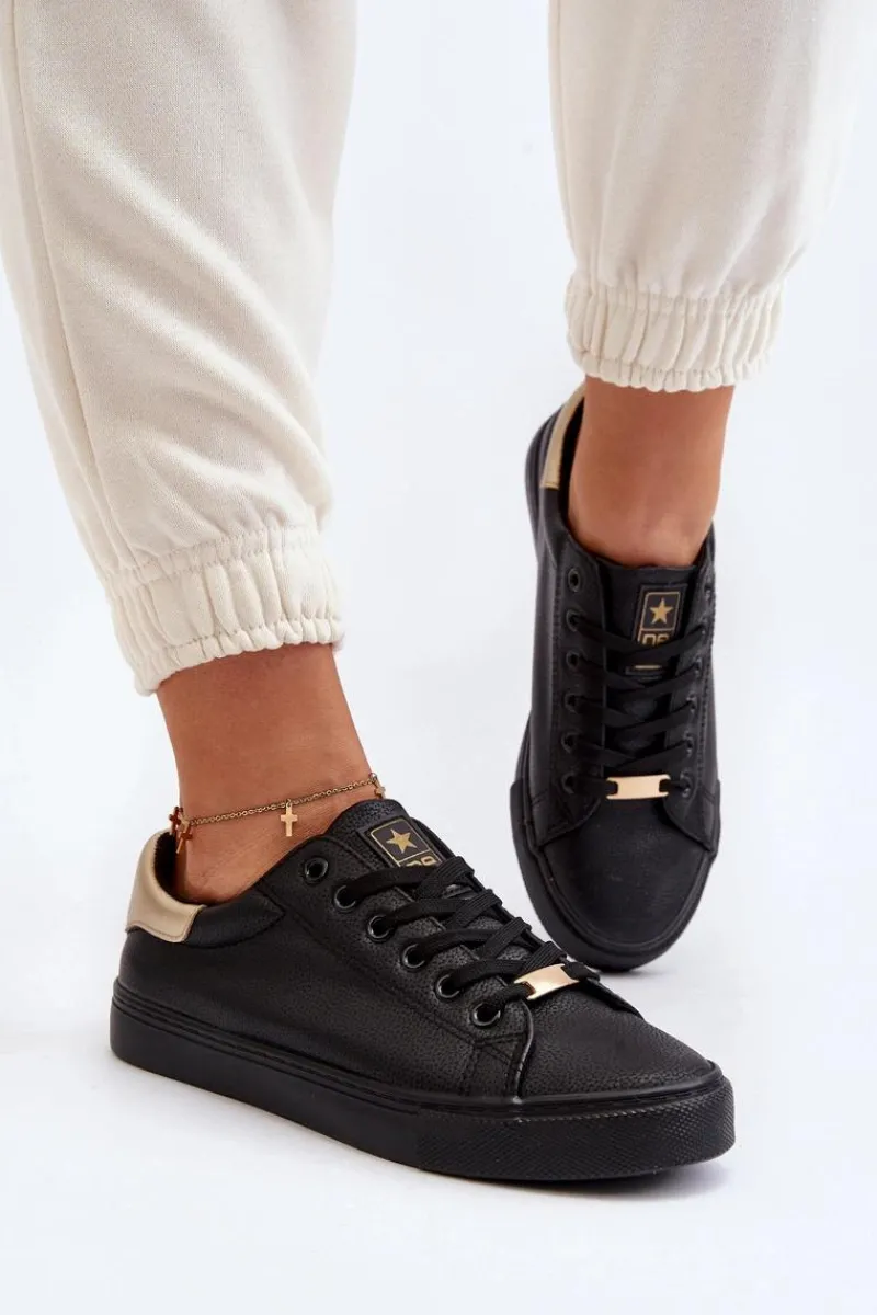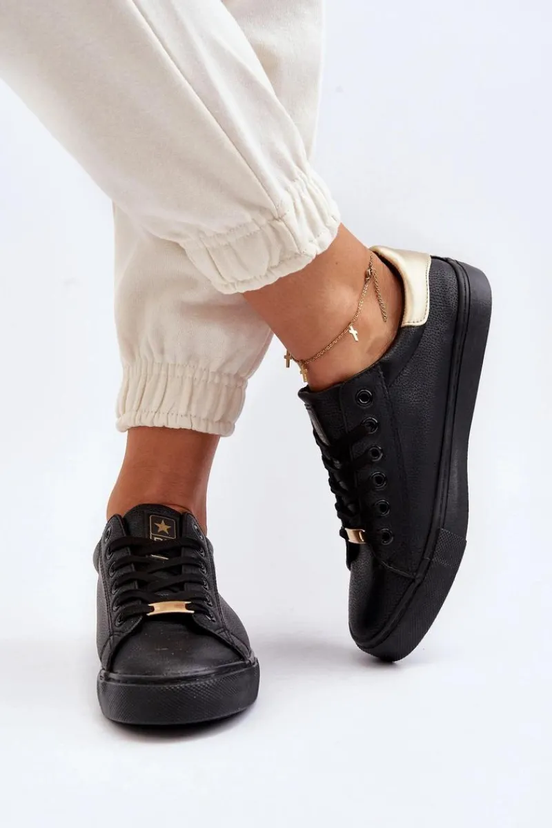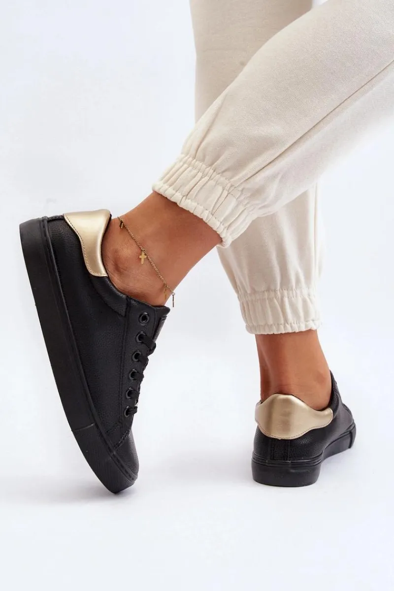Klasyczne trampki damskie wykonane z eko skóry. Osadzone na podeszwie z gumowego tworzywa. Noski zaokrąglone. Model klasycznie sznurowany. Miękka, materiałowa wkładka zapewni wygodę podczas użytkowania nawet przez cały dzień. Fason ten będzie idealnie pasować do niemalże każdej stylizacji ze spodniami i spodenkami. Koniecznie powinny znaleźć się w Twojej wiosenno-letniej garderobie! Przy wyborze rozmiaru prosimy sugerować się tabelą rozmiarów.