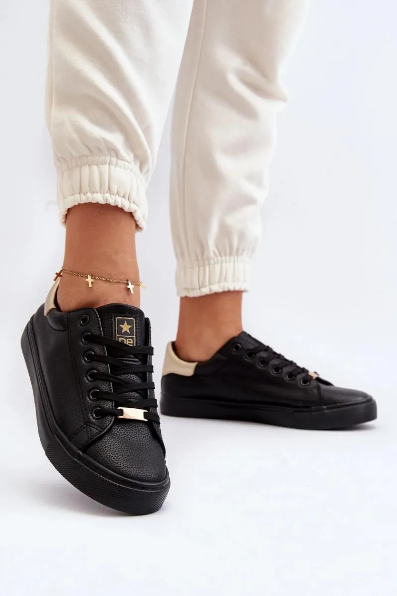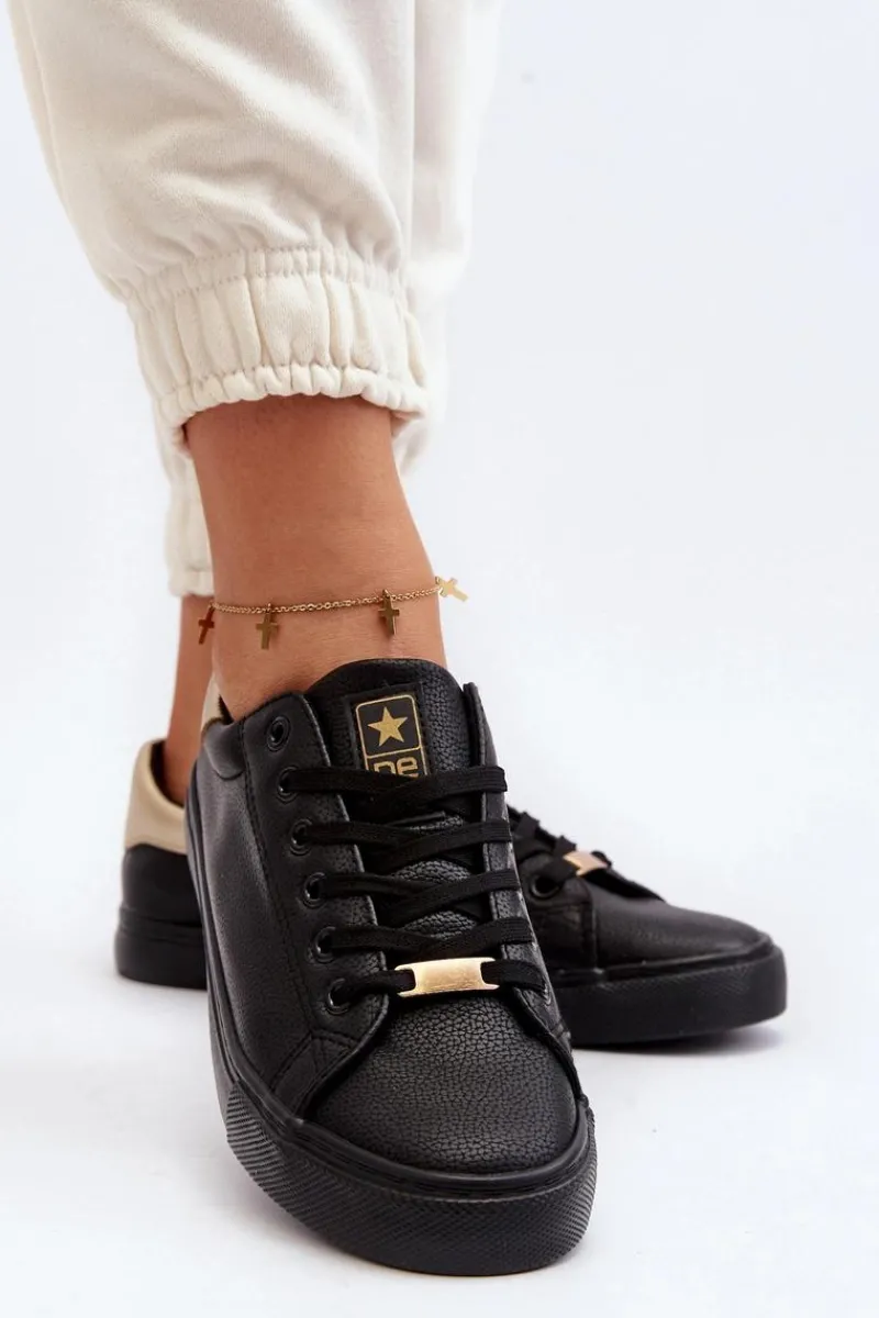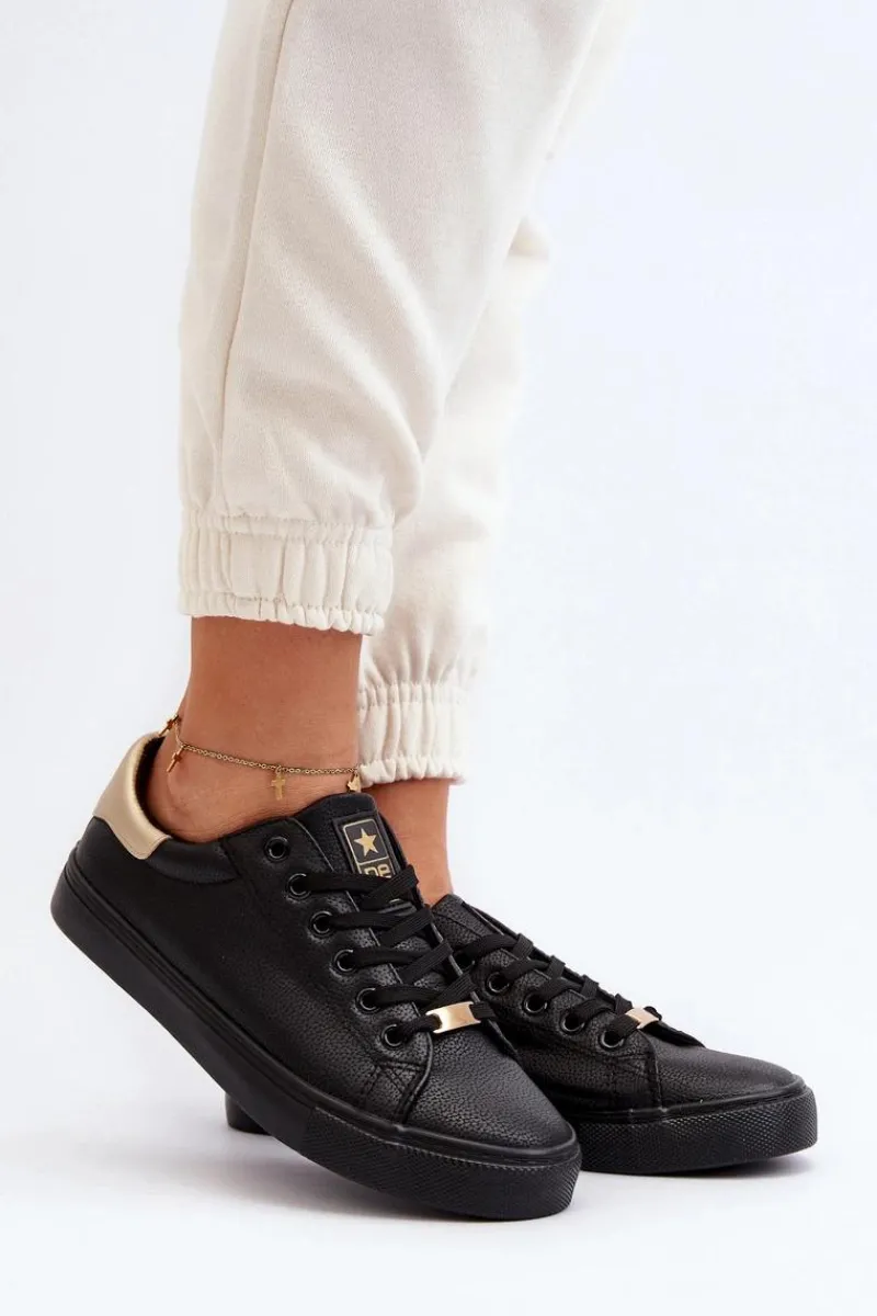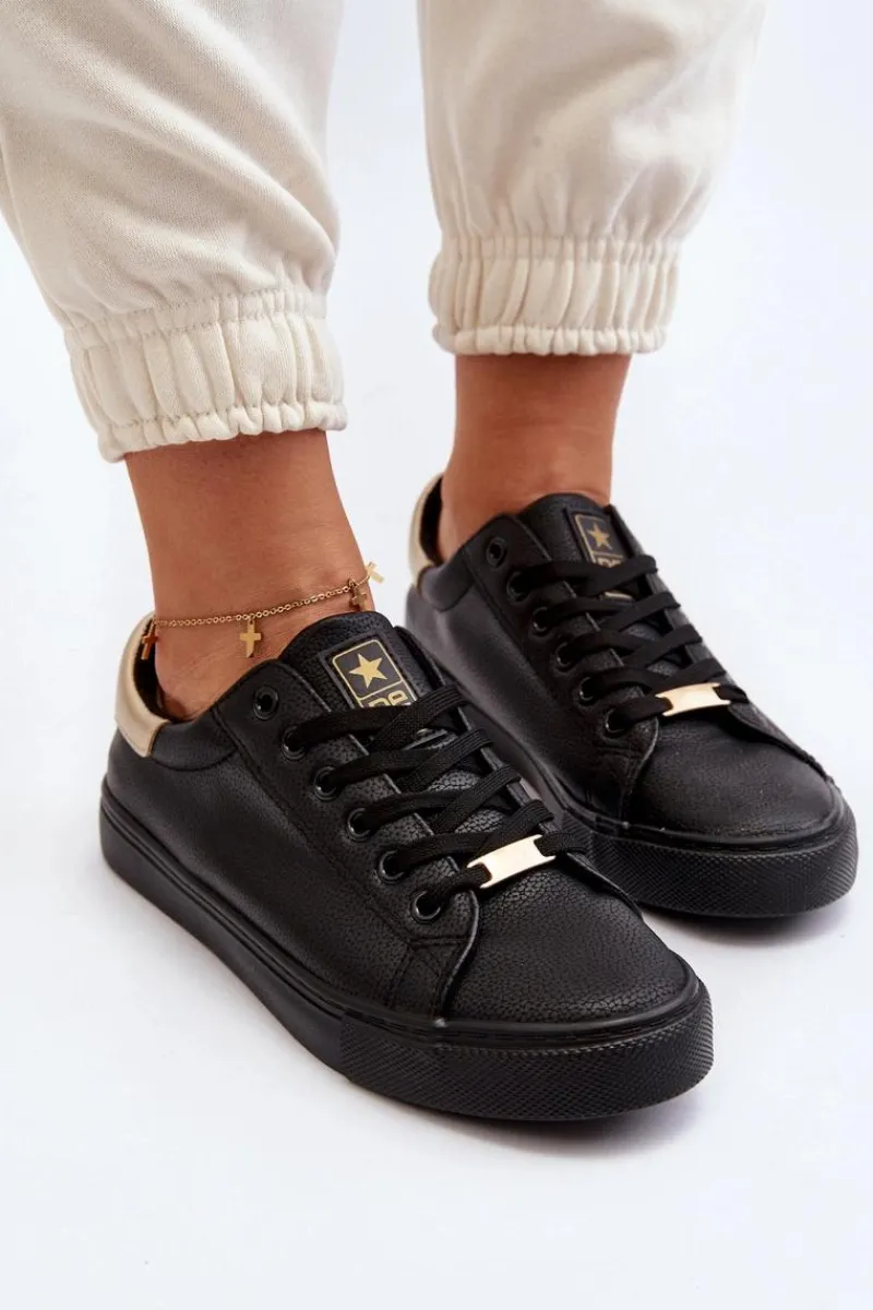 Klasyczne trampki damskie wykonane z eko skóry. Osadzone na podeszwie z gumowego tworzywa. Noski zaokrąglone. Model klasycznie sznurowany. Miękka, materiałowa wkładka zapewni wygodę podczas użytkowania nawet przez cały dzień. Fason ten będzie idealnie pasować do niemalże każdej stylizacji ze spodniami i spodenkami. Koniecznie powinny znaleźć się w Twojej wiosenno-letniej garderobie! Przy wyborze rozmiaru prosimy sugerować się tabelą rozmiarów.