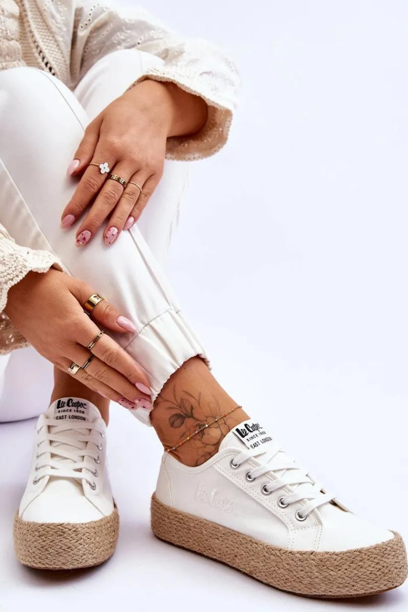Modne, damskie trampki marki Lee Cooper zostały wykonane z materiału tekstylnego. Posiadają masywną platformę ozdobioną jutową plecionką. Model klasycznie sznurowany. Miękka, materiałowa wkładka oraz usztywniany zapiętek zapewnią odpowiednią stabilizację i wygodę w użytkowaniu. Koniecznie sprawdź także pozostałe modele trampek marki Lee Cooper! Przy wyborze rozmiaru prosimy sugerować się poniższą tabelą rozmiarów.