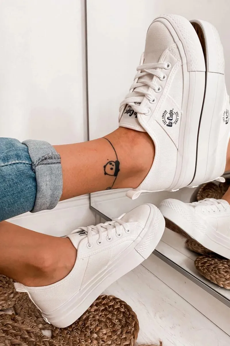 Damskie tenisówki na masywnej platformie marki Lee Cooper. Kultowe już trampki pasują do wielu stylizacji. Buty dobrze dopasowują się do kształtu stopy, posiadają miękką, materiałową wkładkę oraz antypoślizgową podeszwę. Koniecznie sprawdź całą naszą kolekcję butów Lee Cooper. Przy wyborze rozmiaru prosimy sugerować się tabelą rozmiarów.