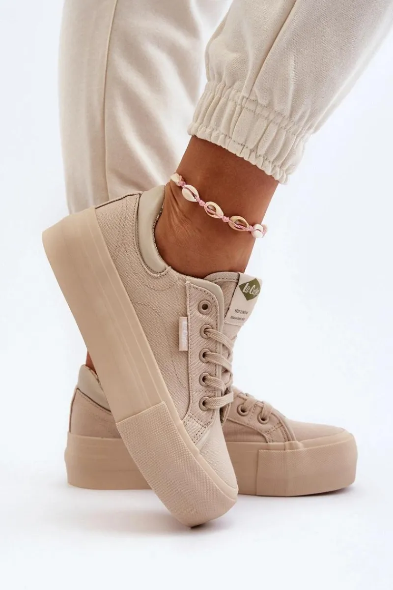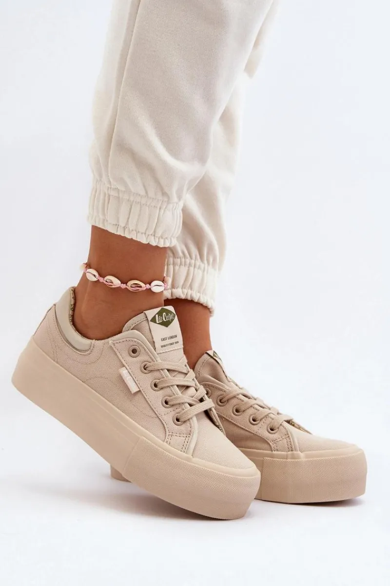 Trampki na masywnej platformie marki Lee Cooper to odpowiedni wybór dla osób ceniących sobie wygodę oraz styl! Wykonane z materiału tekstylnego. Miękka wkładka zapewni komfort podczas użytkowania. Noski zaokrąglone. Z boku wszyte małe logo. Ten klasyczny fason idealnie dopełni wiele wiosenno-letnich stylizacji! Przy wyborze rozmiaru prosimy sugerować się poniższą tabelą rozmiarów.