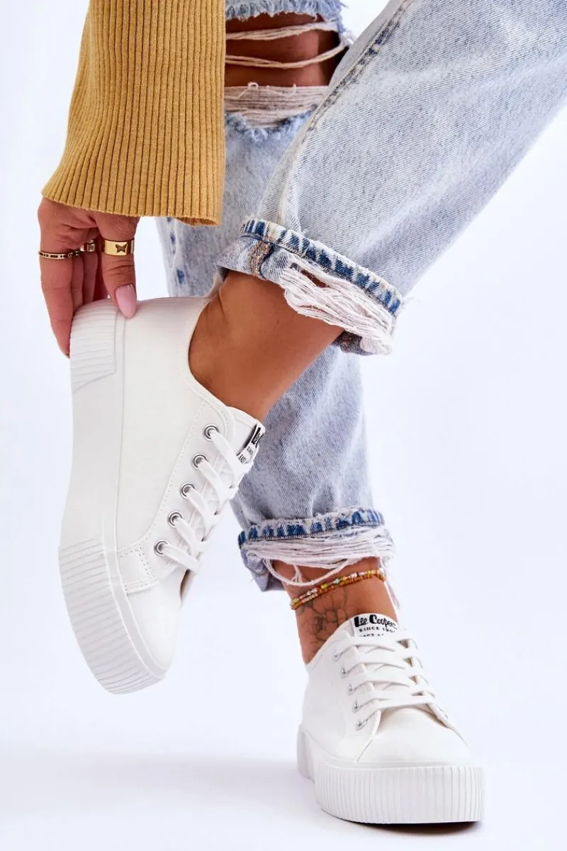 Trampki na masywnej platformie z antypoślizgową podeszwą marki Lee Cooper to odpowiedni wybór dla osób ceniących sobie wygodę oraz styl! Wykonane z materiału tekstylnego z wyszytą z boku cholewki wyspą z palmami i logiem marki Lee Cooper. Usztywniany zapiętek oraz klasyczne sznurowanie pozwoli na komfortowe użytkowanie obuwia. Przy wyborze rozmiaru prosimy sugerować się poniższą tabelą rozmiarów.