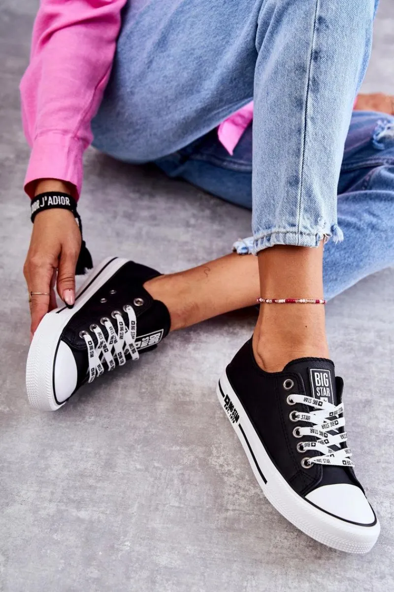 Ponadczasowe trampki damskie marki Big Star zostały wykonane z eko skóry. Posiadają gumowy, wzmacniany nosek. Model charakteryzuje się logowanymi sznurowadłami. Podeszwa wraz z platformą wykonane z gumowego tworzywa, dzięki którym model ten jest antypoślizgowy. Wkładka materiałowa. Klasyczne trampki z pewnością świetnie będą prezentować się w wielu stylizacjach. Przy wyborze rozmiaru prosimy sugerować się tabelą rozmiarów.