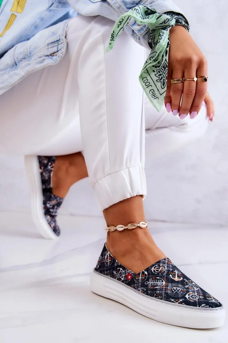Tenisówki z cholewką przed kostkę posiadają ciekawy wzór, który idealnie pasuje na nadchodzący wiosenno-letni sezon. Osadzone na masywnej platformie z okrągłym noskiem. Model wsuwany. Wykonane z wysokiej jakości materiału tekstylnego. Świetnie będą wyglądać z wieloma stylizacjami – zwiewną sukienką czy spodniami. Posiadają wkładkę Memory Foam System, która zapamiętuje kształt stopy, zapewnia doskonałe dopasowanie, absorbuje wstrząsy, jest odporna na odkształcenia oraz pozwala na odparowywanie wilgoci i regulacje temperatury.Przy wyborze rozmiaru prosimy sugerować się tabelą rozmiarów.