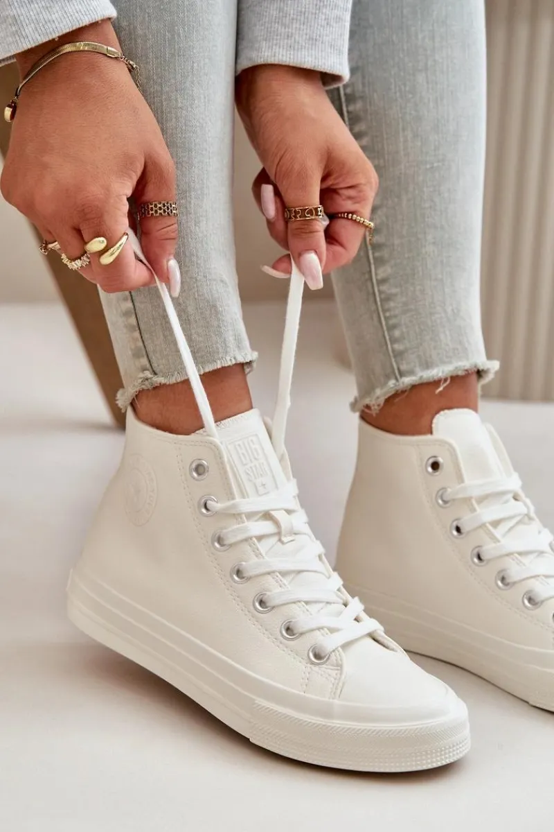 Damskie trampki od marki BIG STAR z cholewką za kostkę. Wykonane z eko skóry. Osadzone na podeszwie z gumowego tworzywa. Noski zaokrąglone. Środek ocieplony kocem obuwniczym. Koniecznie sprawdź całą naszą kolekcję butów marki BIG STAR. Przy wyborze rozmiaru prosimy sugerować się tabelą rozmiarów.