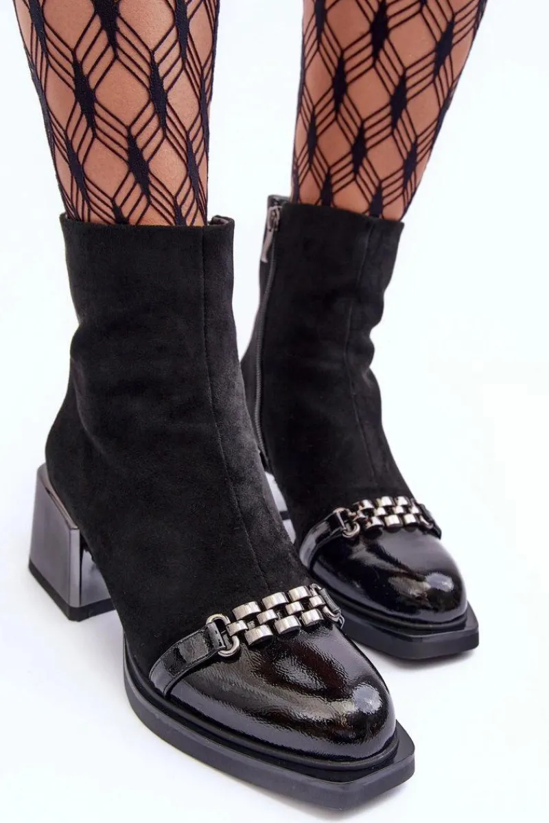 Botki damskie zostały wykonane z wysokiej jakości eko zamszu. Model za kostkę z noskiem zaokrąglonym. Osadzone na masywnym obcasie w postaci klocka. Zapinane na suwak z boku. Środek ocieplony kocem obuwniczym. Ten model to HIT tego sezonu — musisz go mieć! Przy wyborze rozmiaru prosimy sugerować się tabelą rozmiarów.