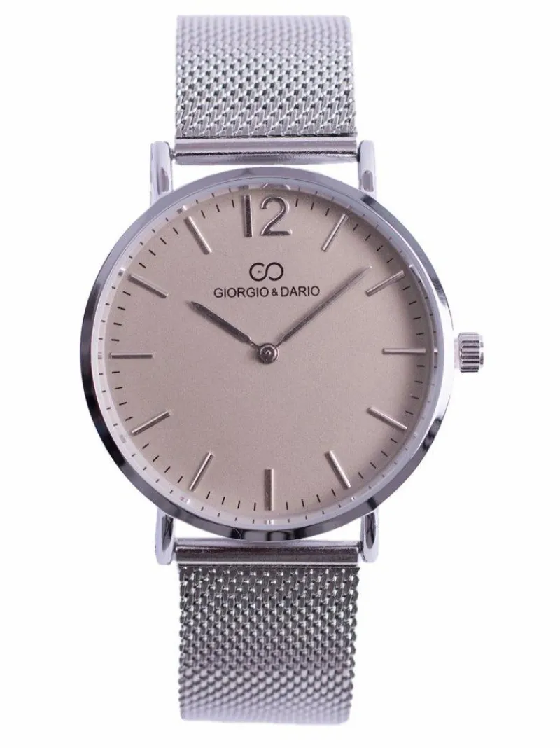 Zegarek Rene marki Giorgio & Dario to gratka stworzona z myślą o kobietach kochających gustowne dodatki nie tylko do eleganckich ale również do codziennych stylizacji. Zegarek posiada płaskie szkiełko, dzięki temu jeszcze lepiej prezentuje się na ręce a jednocześnie jest bardziej czytelny. Bransoleta typu mesh w kolorze tarczy oraz koperta utrzymana w kolorystyce złota wykonana ze stali chirurgicznej z możliwością łatwej i szybkiej regulacji. Wysoka jakość wykonania mechanizmu i koperty.