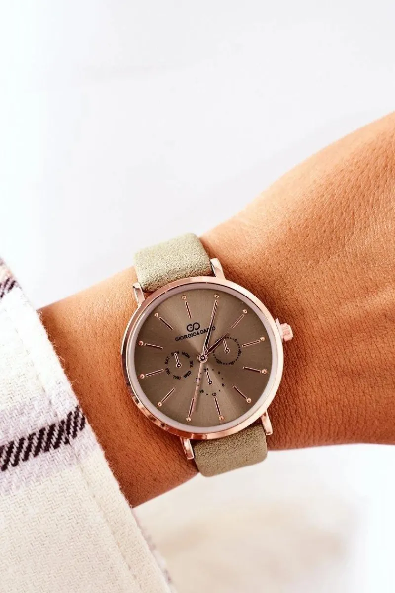 Piękny zegarek marki Giorgio&Dario. Tarcza zegarka wykonana jest ze stali nierdzewnej, a pasek ze skóry ekologicznej.