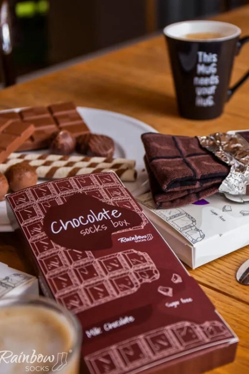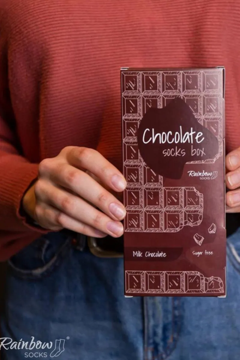 Nie możesz przetrwać dnia bez kostki czekolady? Chciałbyś odnaleźć taką, która jest słodka i wege, ale jednocześnie nie zawiera cukru? Oto ona! Chocolate Socks Box – śmieszne skarpetki, idealne dla każdego łasucha. Tak, tak – to nie jest prawdziwa tabliczka czekolady, chociaż tak wygląda. W oryginalnym pudełeczku owinięta jest para pysznych, szalonych skarpet. Porzuć swoją dietę bez wyrzutów sumienia i ciesz się niesamowitymi skarpetkami na miarę prawdziwej belgijskiej czekolady!